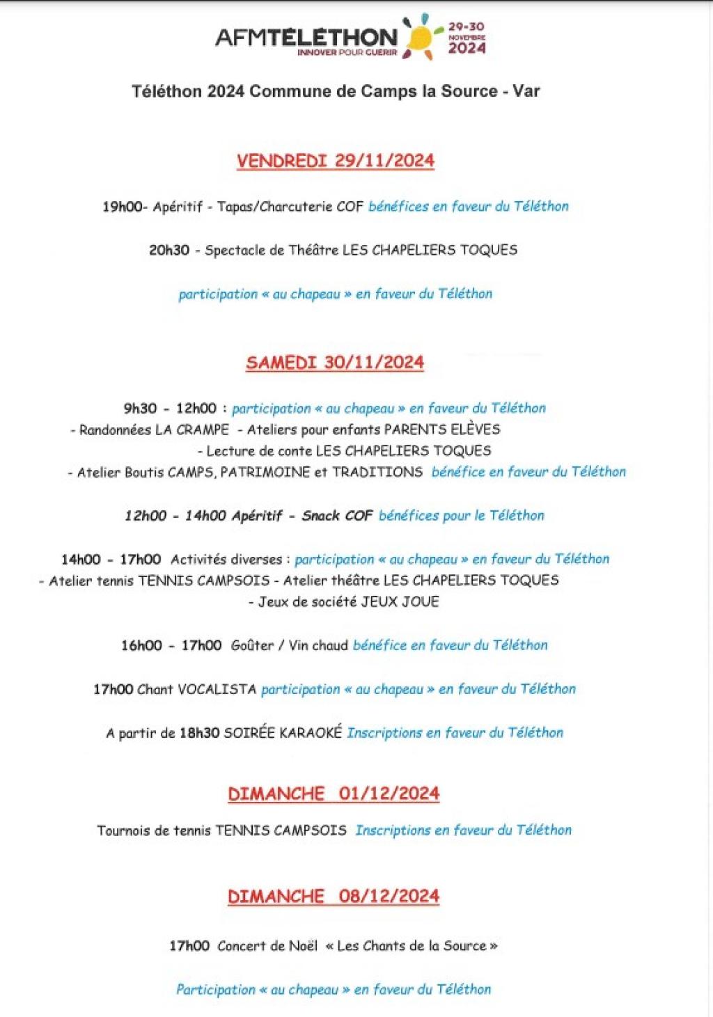 “ De nombreuses animations vous seront proposés en faveur du Téléthon: spectacle, ateliers, concert, .... ”