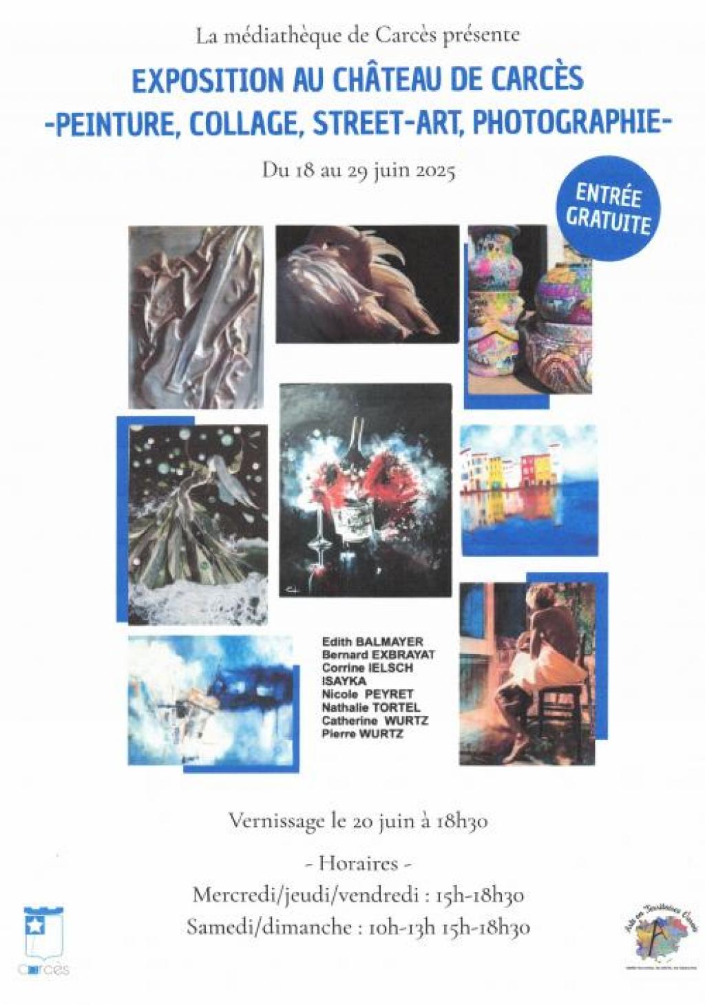 Du 18/06 au 29/06/2025 le mercredi, jeudi et vendredi de 15h à 18h30. Les week-ends de 10h à 13h et de 15h à 18h30.