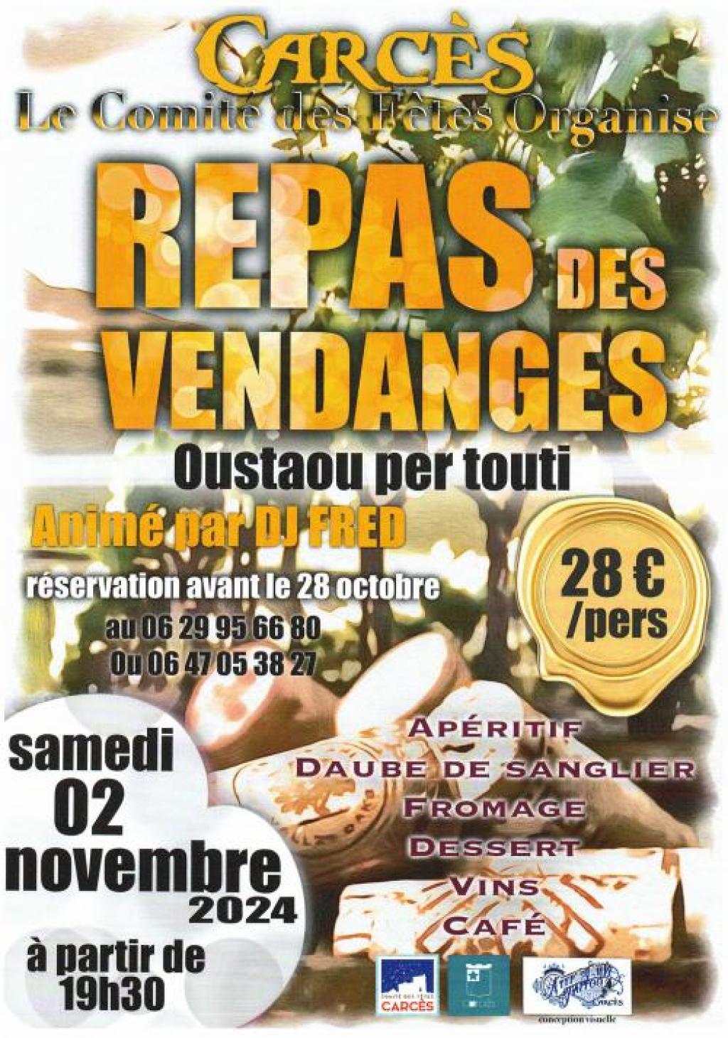 “ Célébrons la fin des vendanges autour d'un repas festif animé par DJ Fred ”