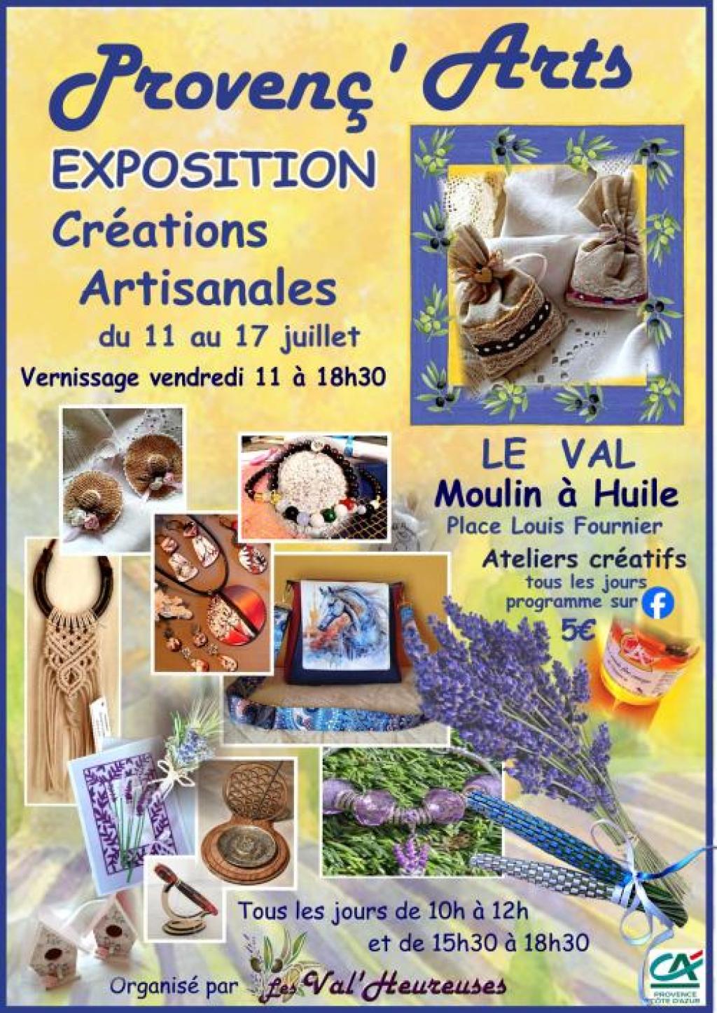 “ L'Association Les Val'Heureuses vous propose une exposition d'artisanat local, avec des ateliers créatifs tous les jours (lavande, bijoux . . .) ”