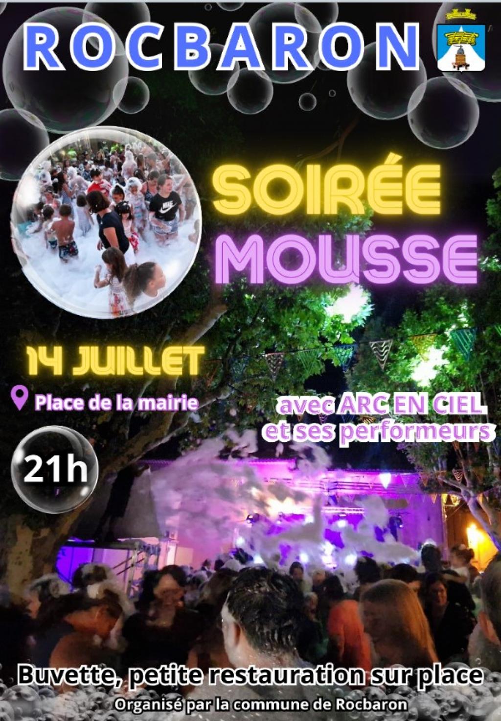 Dans un second temps, vous pourrez profiter de la buvette et d'une petite restauration sur place avant le début de la soirée mousse, animée par Arc en Ciel. Les participants, vivront un moment festif et musical, couronné par un déluge de mousse qui ravira petits et grands.