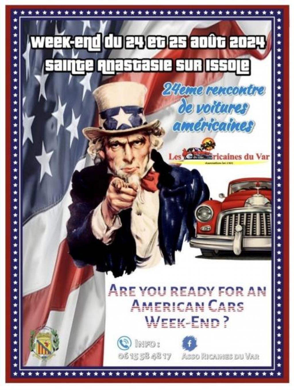 “ 24ème rencontres de voitures américaines. Exposition de voitures, parade dans les rues du village, concerts, stands, buvette et food trucks. Concours et remise des prix. ”