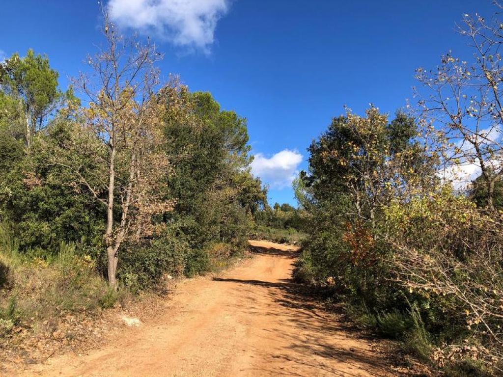 Depuis le domaine de Garbelle, suivre le chemin balisé en bleu, passer une barrière DFCI et poursuivre pendant 500 mètres sur la même piste.