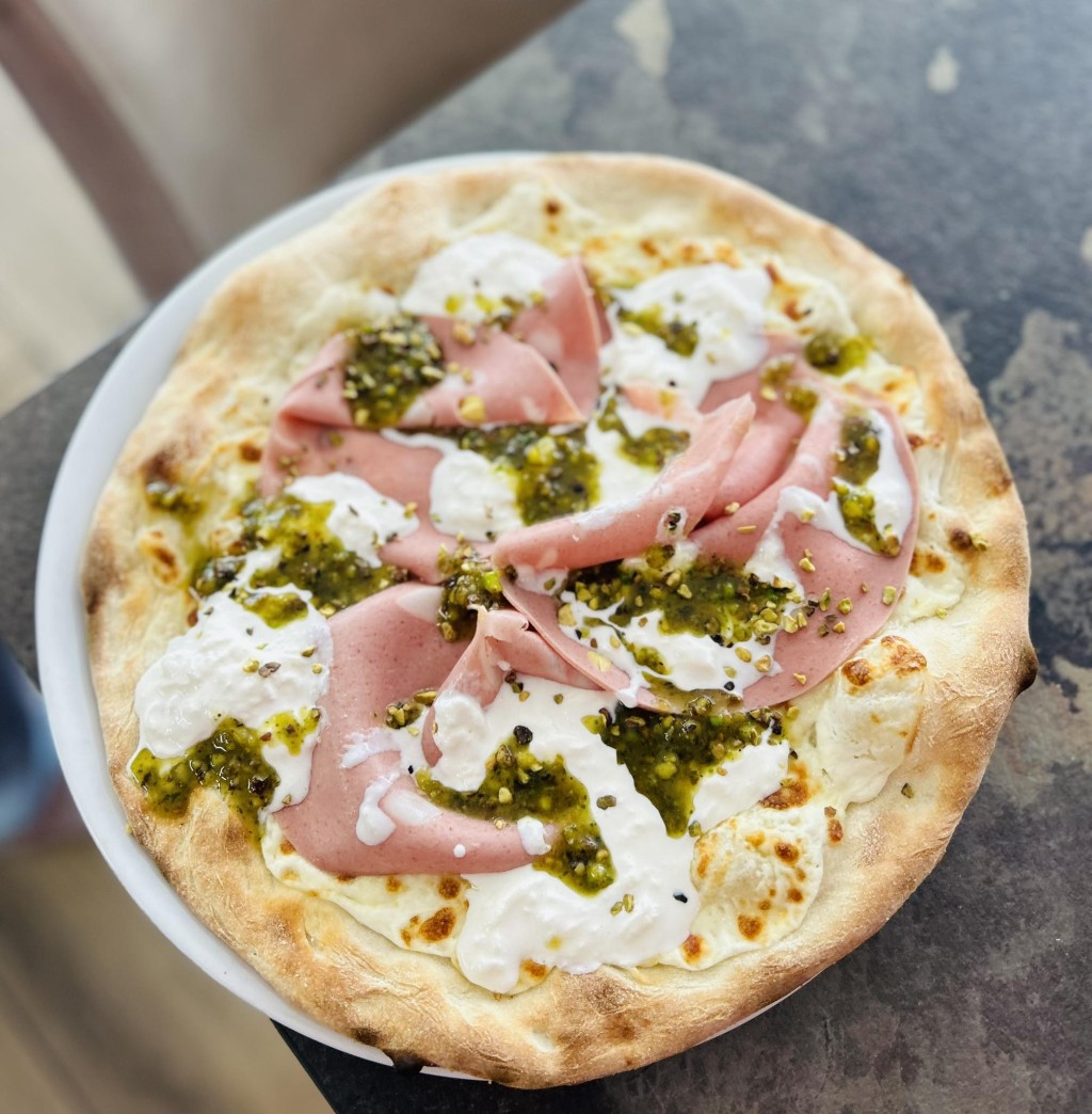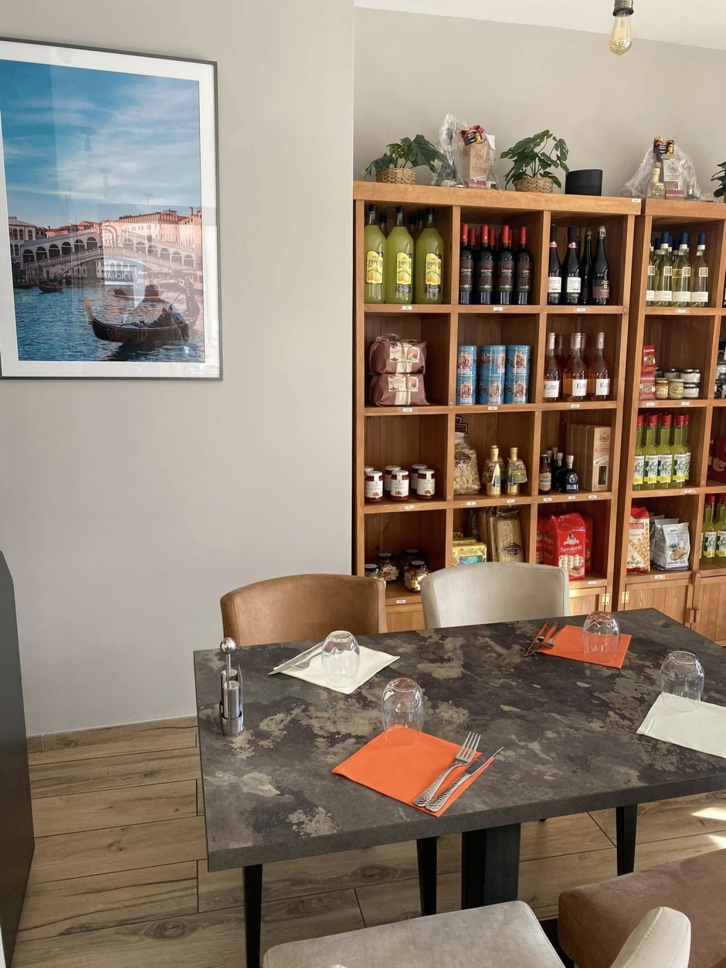 Dégustez des spécialités italiennes dans un restaurant au décor tendance. Vente d'épicerie fine sur place.