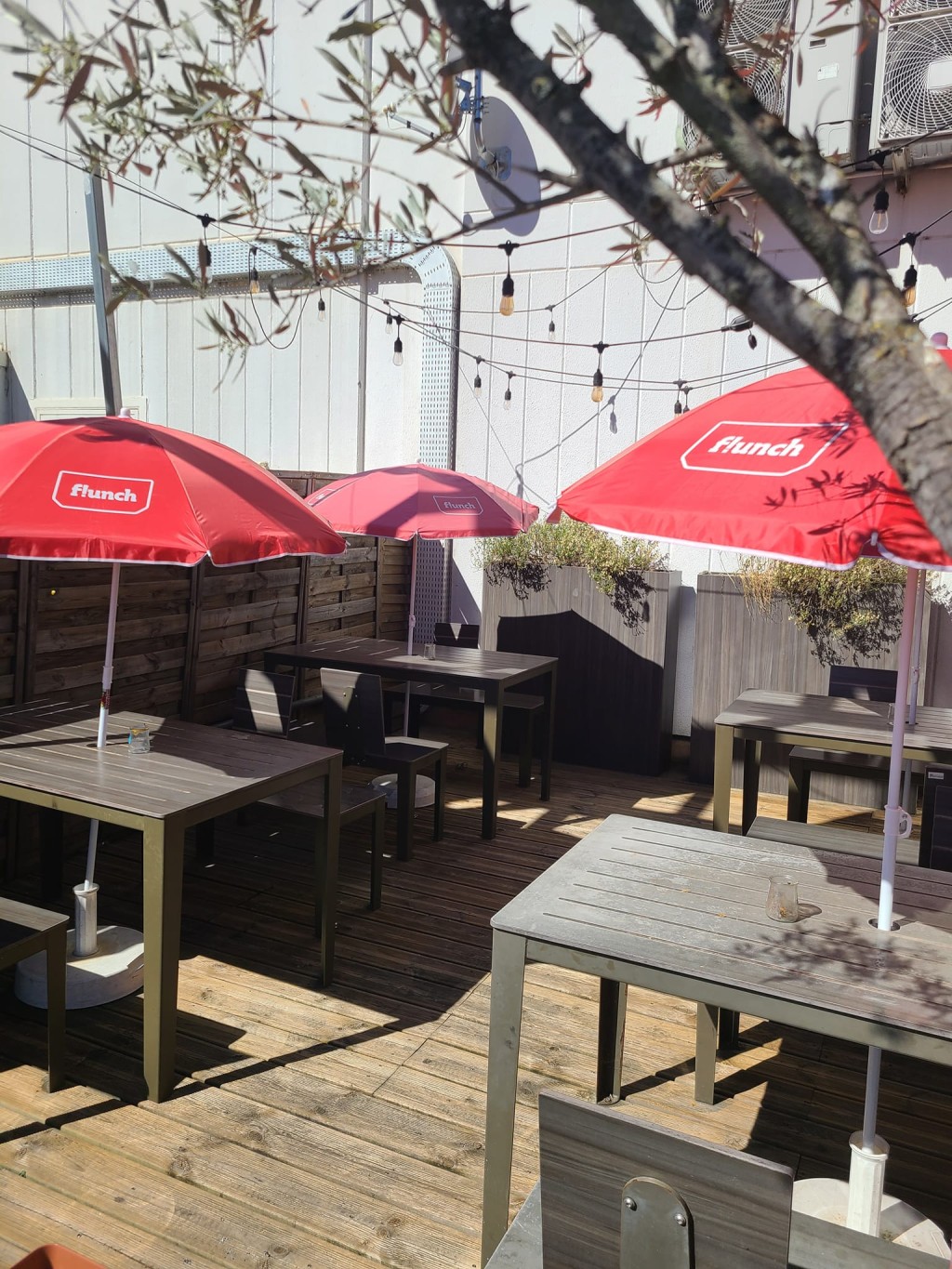 Plats chauds, grillades, pizzas sur place ou à emporter, galettes, bar et cocktails, café, glaces et crêpes. Animaux acceptés en véranda.