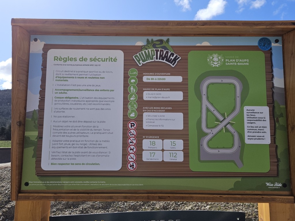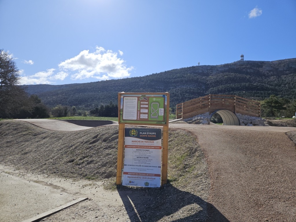Le pumptrack de Plan d'Aups Sainte-Baume est un circuit destiné à la pratique sportive ou de loisirs dont l'équipement permet l'utilisation d'équipements à roues et roulettes non motorisées. Conception par Wise Ride.