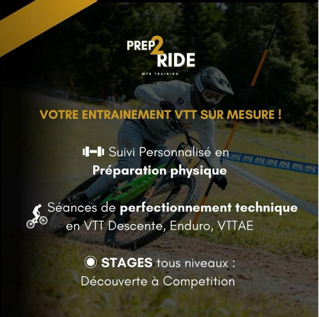 Bienvenue chez Prep2ride créé pour accompagner les VTTistes dans leurs entrainements physiques et techniques ! Des stages pour des clubs, comités ou entreprises, pour la découverte du VTT jusqu’à la Compétition. Contactez-moi pour plus d'infos !