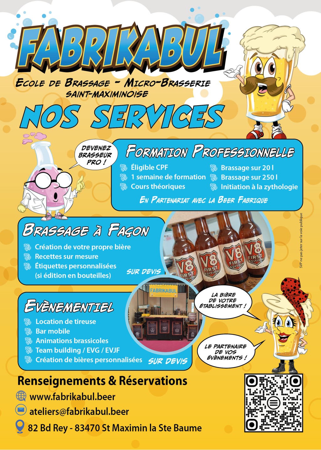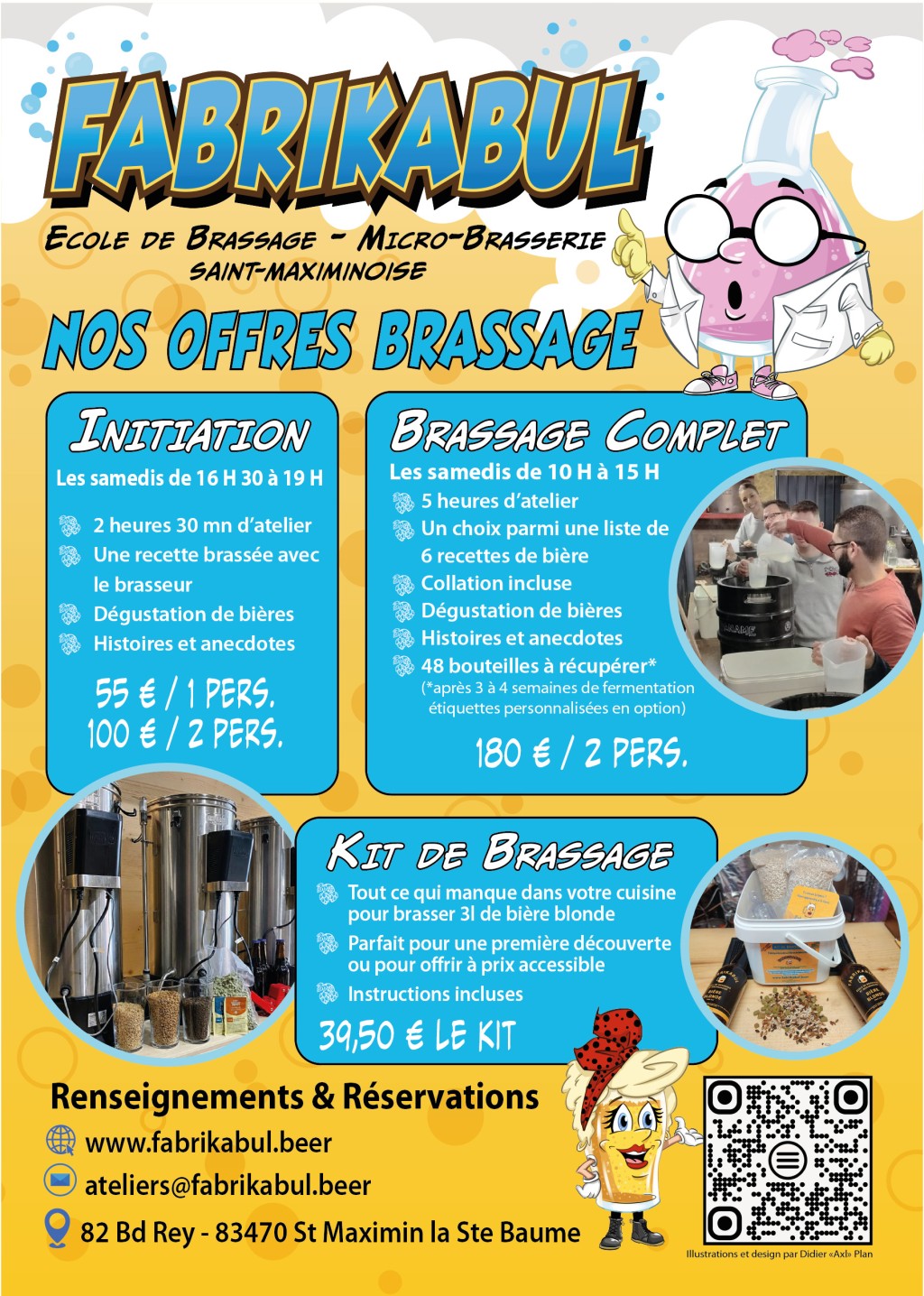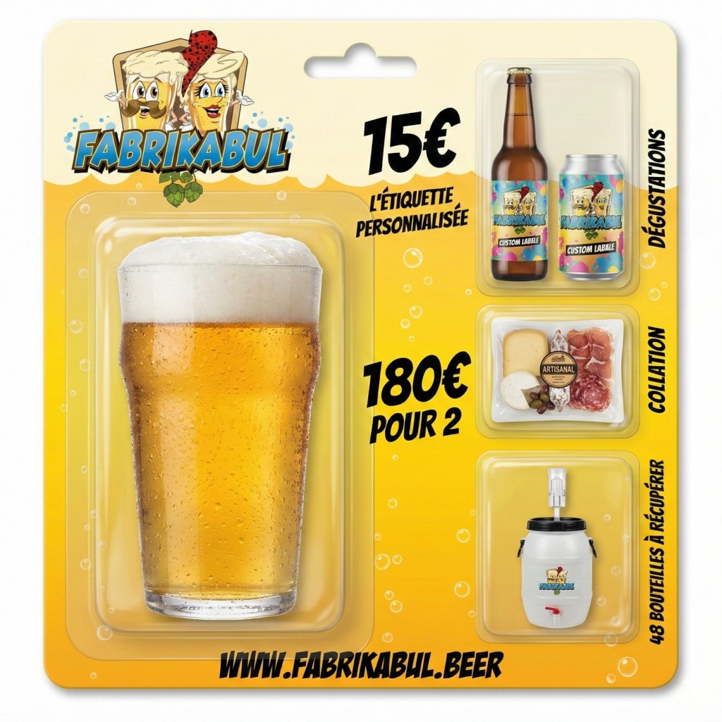 Ateliers brassage de 55 à 180 € (supplément de 15€ pour une étiquette 100% personnalisée).