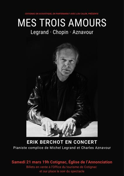 Concert : L'association "Cotignac en acoustique" vous invite à un voyage musical avec pour compagnon de note Monsieur Erik Berchot, pianiste de Charles Aznavour pendant 20 ans.
