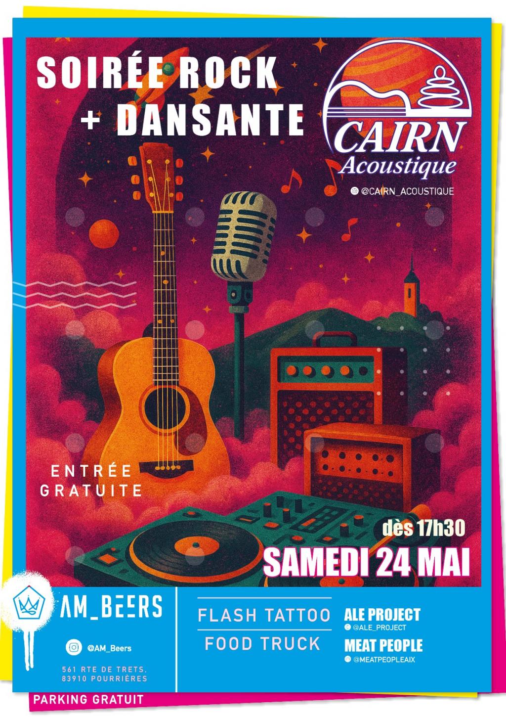 “ Place au groupe Cairn acoustique pour une soirée rock au Am beers. Food truck et tatoos flash sur place ”