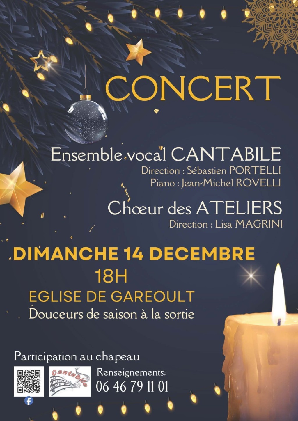 “ un concert proposé par l'Ensemble Vocal Cantabile (Direction : Sébastien PORTELLI - Piano : Jean-Michel ROVELLI) en compagnie du Chœur des Ateliers (Direction : Lisa MAGRINI). Douceurs de saison à l'issue du concert ”