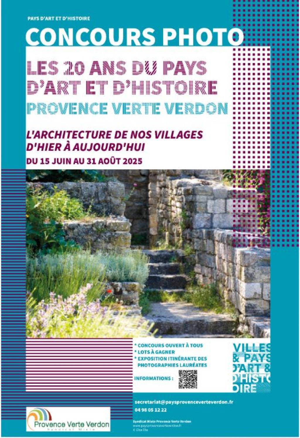 “ Le Pays d’art et d’histoire Provence Verte Verdon fête ses 20 ans . À cette occasion, il propose un concours photo estival sur la thématique de L’architecture de nos villages d’hier à aujourd’hui. ”