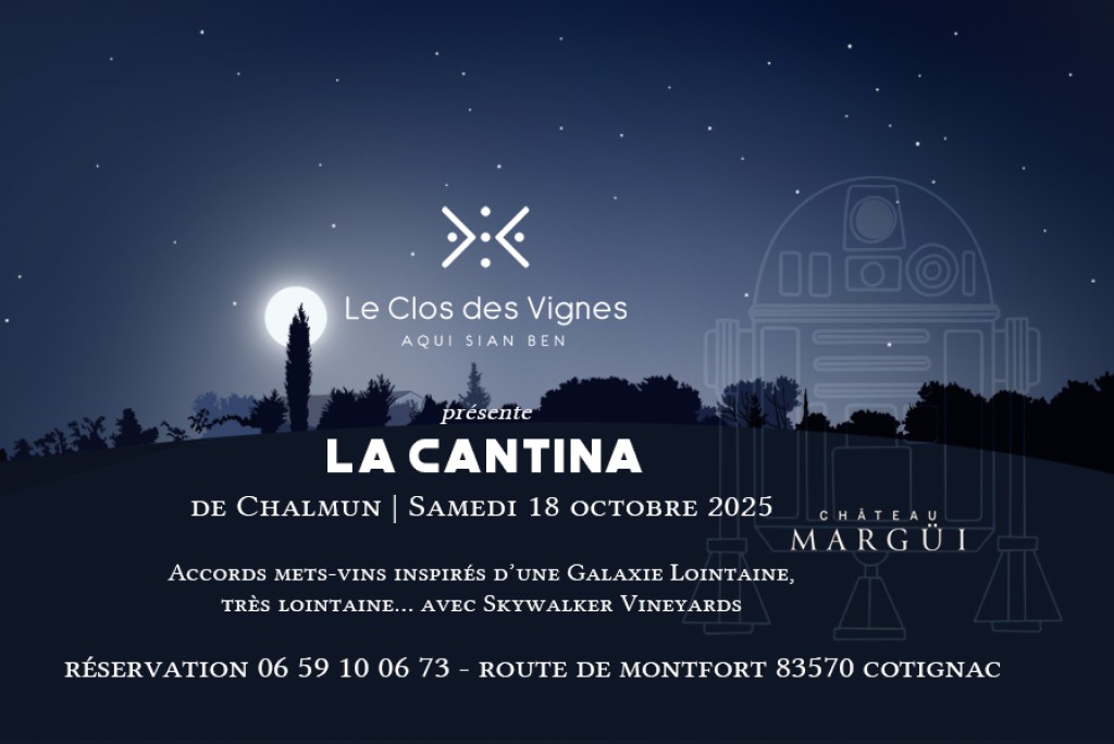 Le Clos des Vignes vous transporte dans une galaxie lointaine, très lointaine, en nous inspirant de l’univers Star Wars et plus particulièrement de la célèbre Cantina de Chalmun !