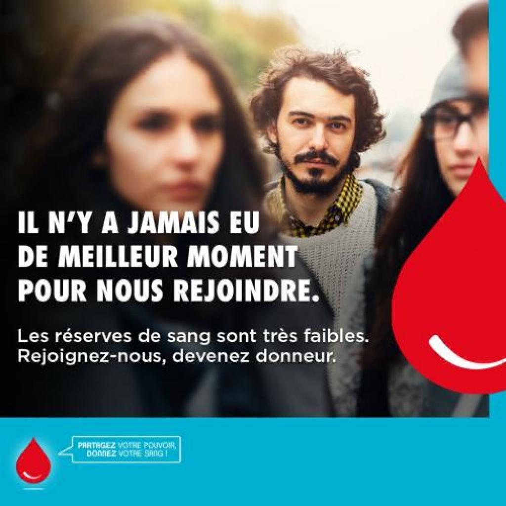 “ L'Etablissement Français du Sang lance un nouvel appel au don. Votre mobilisation est essentielle pour stabiliser les réserves de sang. Devenez donneurs en réservant votre créneau sur le site internet. ”