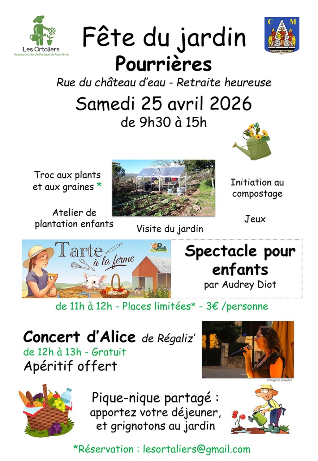 “ Venez profiter d'une journée au jardin avec troc de plants et aux graines, ateliers pour enfants, visite du jardin, initiation au compostage et jeux. Un spectacle pour enfant et un concert sont également au programme, suivis d'un pique-nique partagé. ”