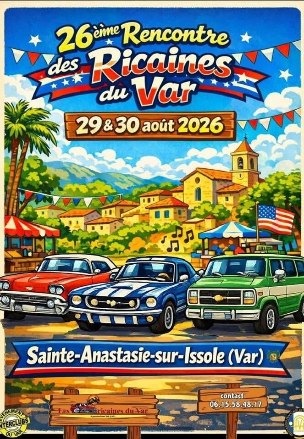 “ Les Ricaines du Var célèbrent leur 26ème anniversaire! Sainte-Anastasie vibrera au son des moteurs vrombissants et au rythme de la musique américaine. Venez partager un moment de convivialité et de passion. On vous attend pour un week-end inoubliable ! ”