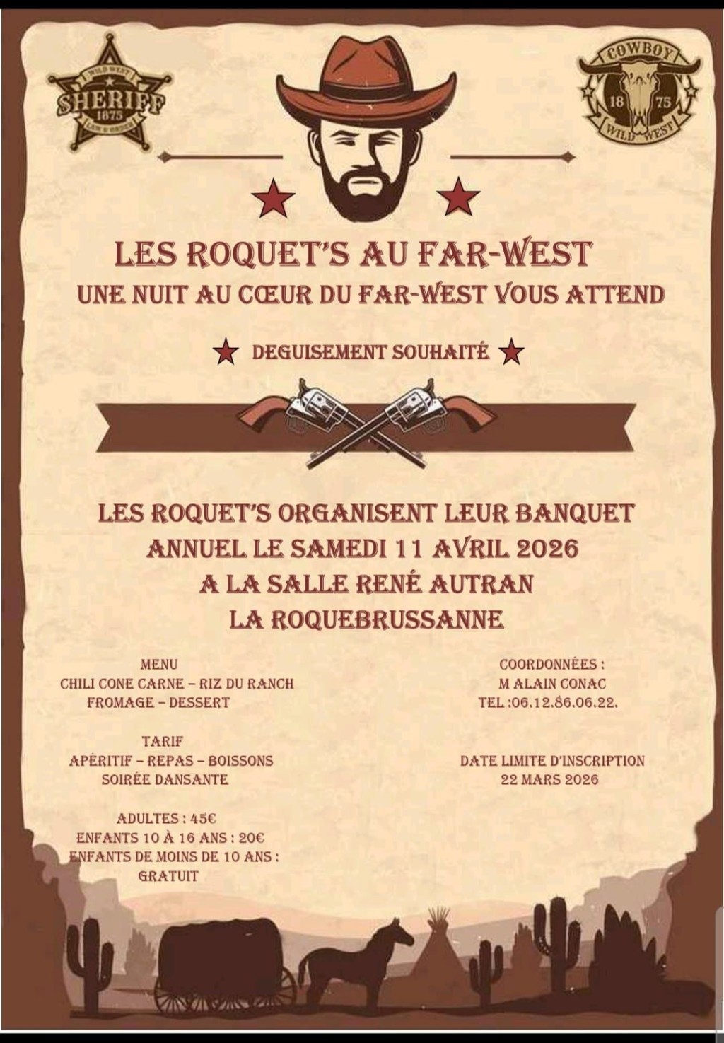 “ Une soirée dansante et un repas vous sont proposés; Déguisement souhaité. ”