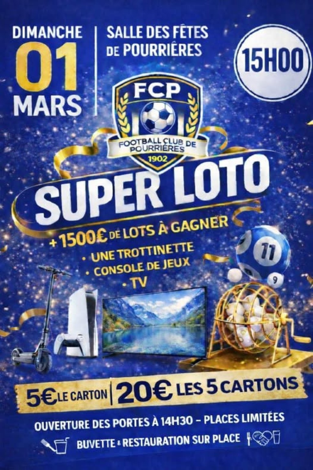 “ Venez nombreux, en famille ou entre amis, pour un moment convivial et plein de suspense. De nombreux lots à gagner: trottinette, console de jeux, TV, et bien d'autres encore ”