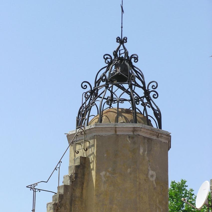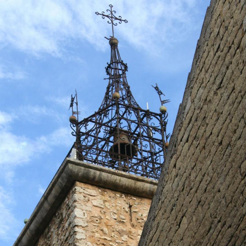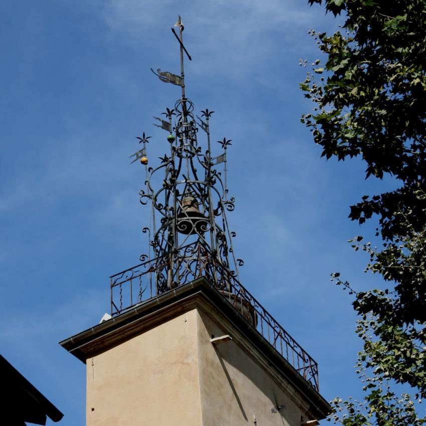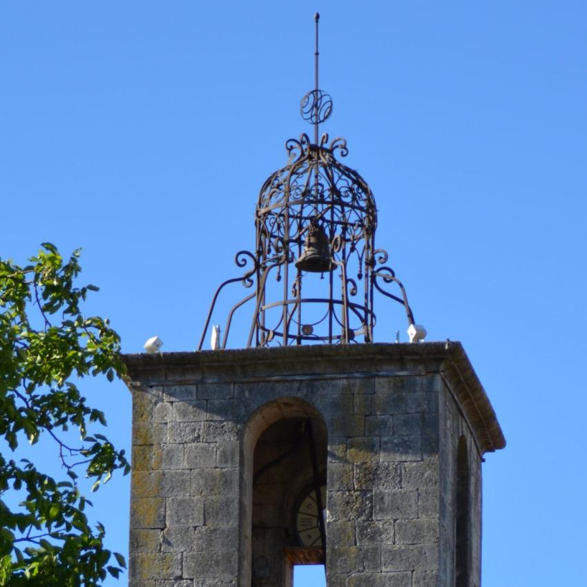 Au sommet de l’église paroissiale Saint-Etienne à Garéoult, se dresse une magnifique horloge surmontée d’un campanile en fer forgé abritant sa cloche