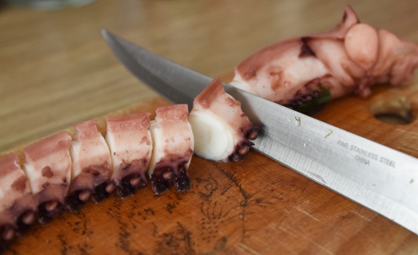 2. Récupèrer ses tentacules et attendre qu'elles refroidissent avant de les couper en petits morceaux