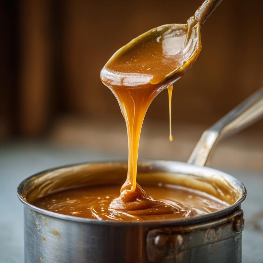 4. Cuire à 154°C (thermomètre confiseur) sans arrêter de tourner, toujours à feu doux
