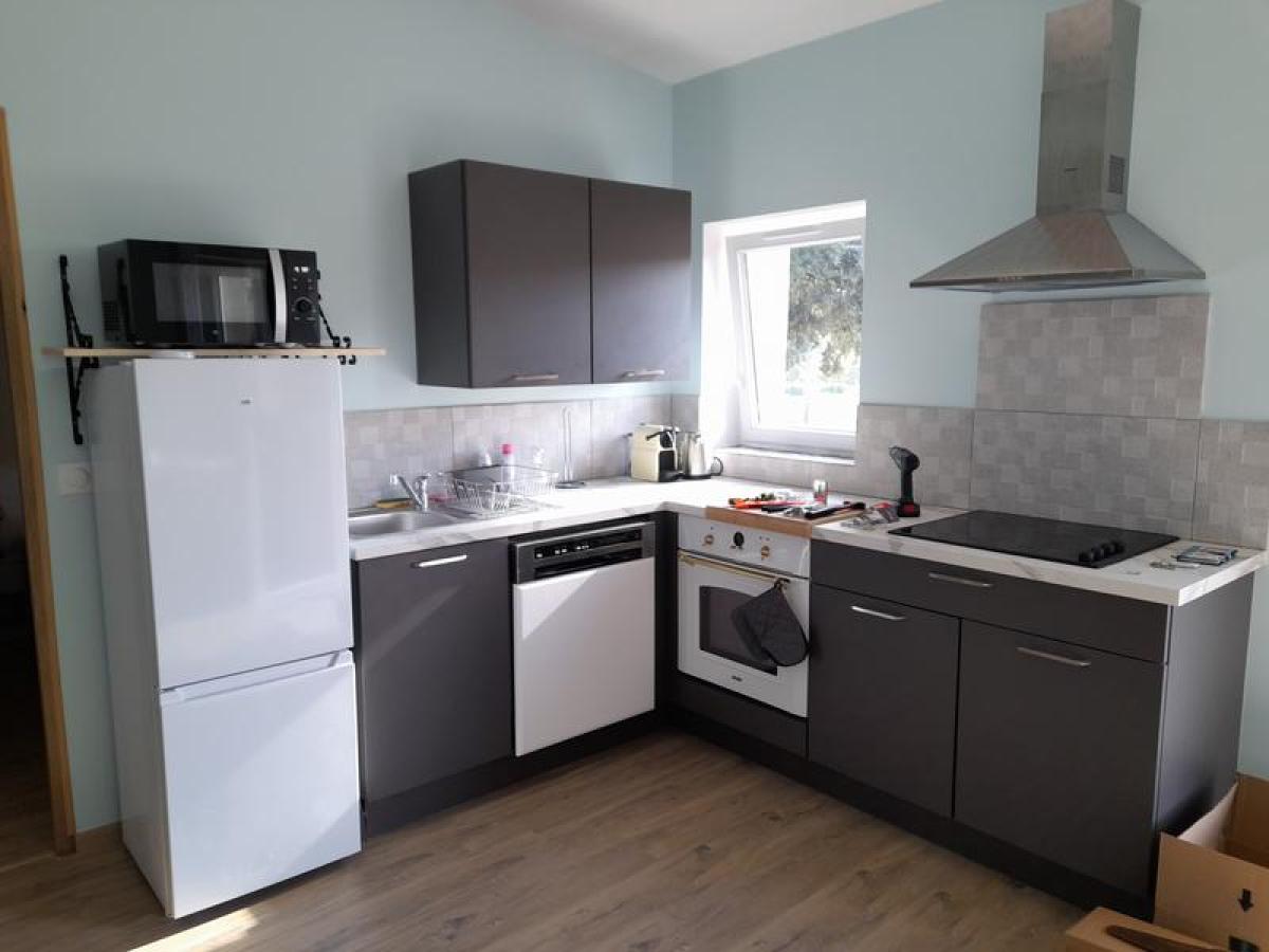 Cuisine neuve faîte sur mesure pour l'appartement et entièrement équipée.