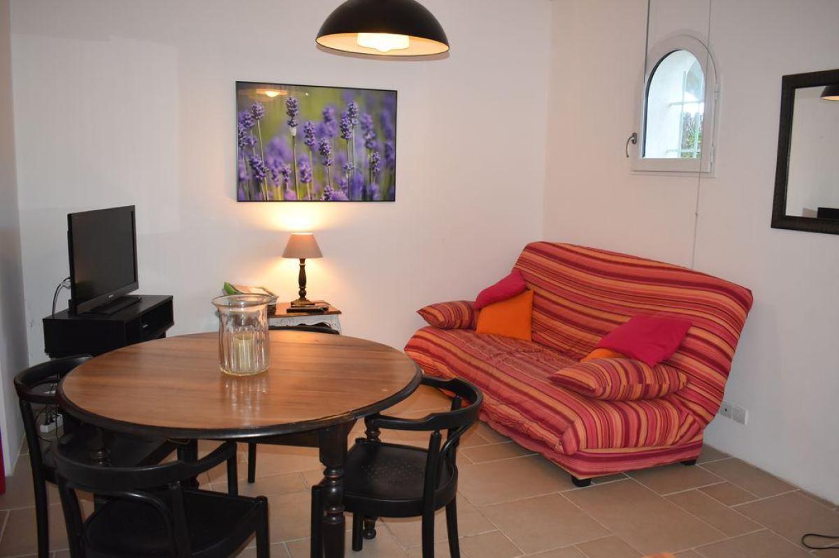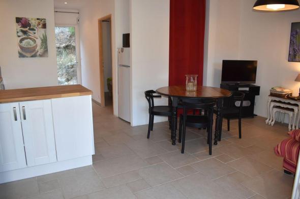 À 900 m du village - Appartement de plain-pied, mitoyen. Belle vue sur les collines, champs de vignes et oliviers. Terrain de 2 hectares. Quartier au calme. Possibilité de louer un autre hébergement pour 4 pers. sur la même propriété remise de 5%.