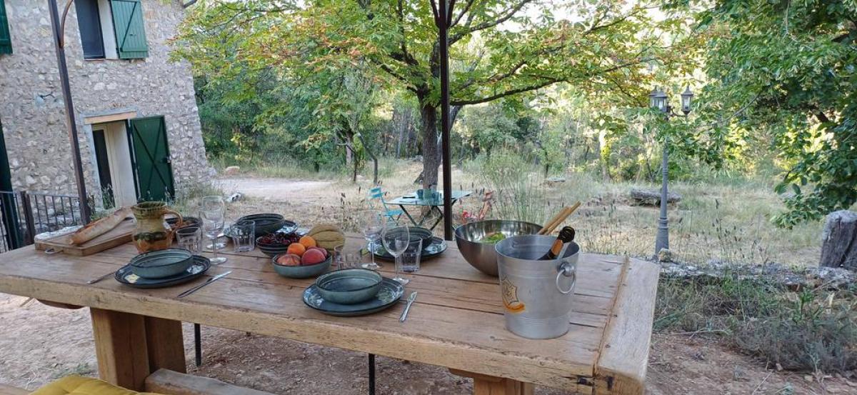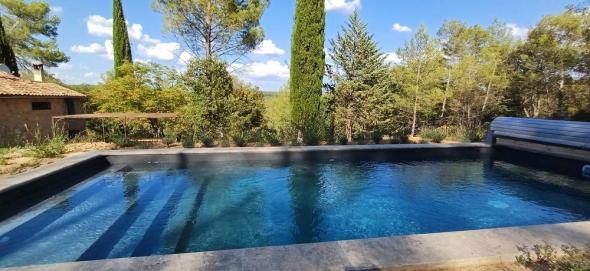Spacieuse maison plain-pied de 85 m² dans une vaste propriété non clôturée de 100 hectares avec piscine chauffée et deux pergolas dont l'une avec une grande table extérieure à Cotignac, classé parmi les plus beaux villages de France.