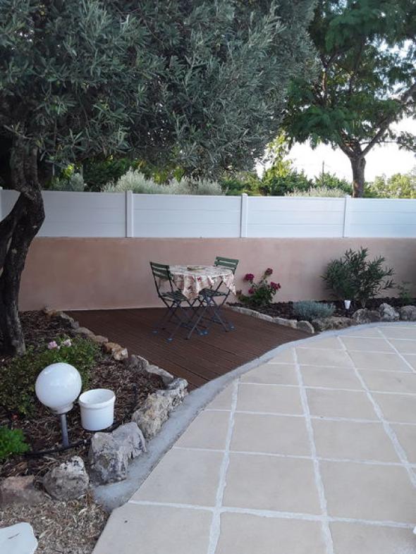Studio avec un étage attenant à la maison des propriétaires. Jardin clôturé, fleuri et arboré, avec un potager. Quartier calme et reposant à environ 2.5 km du village. Respecter scrupuleusement le nombre de personnes (beaucoup trop d'abus)