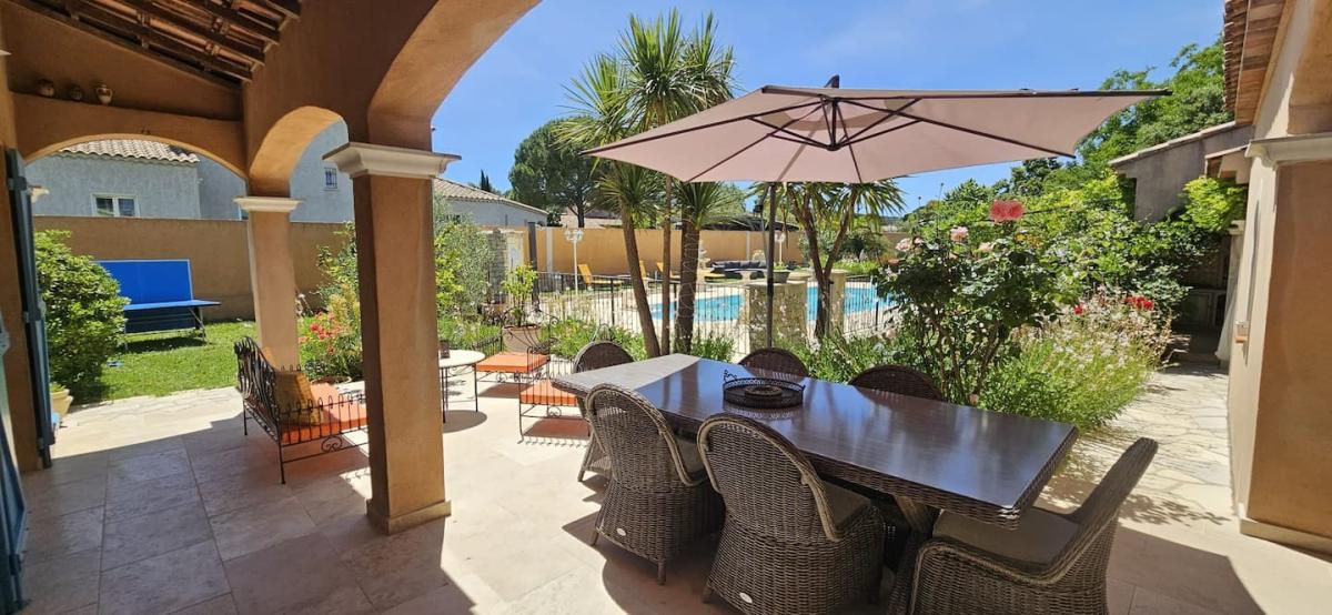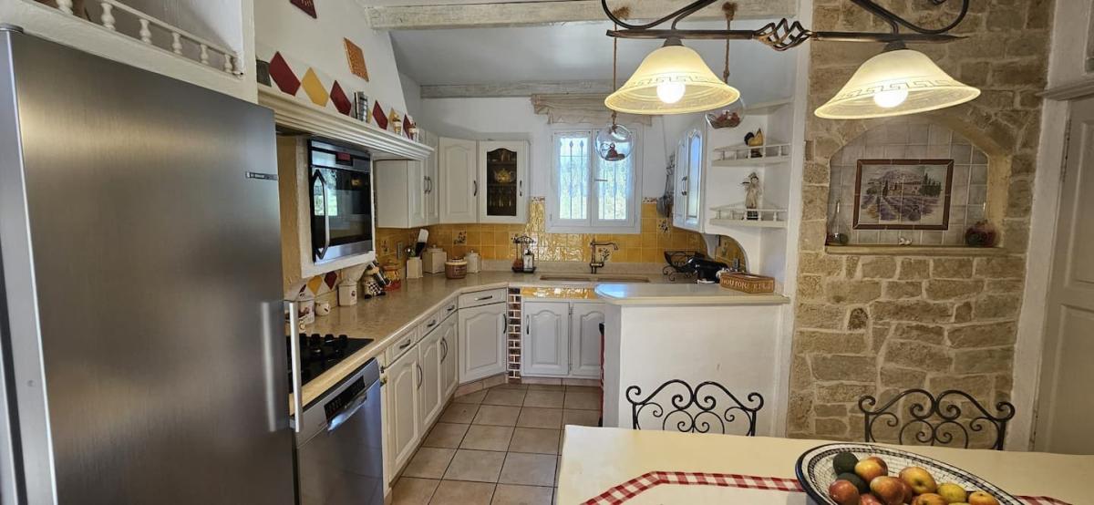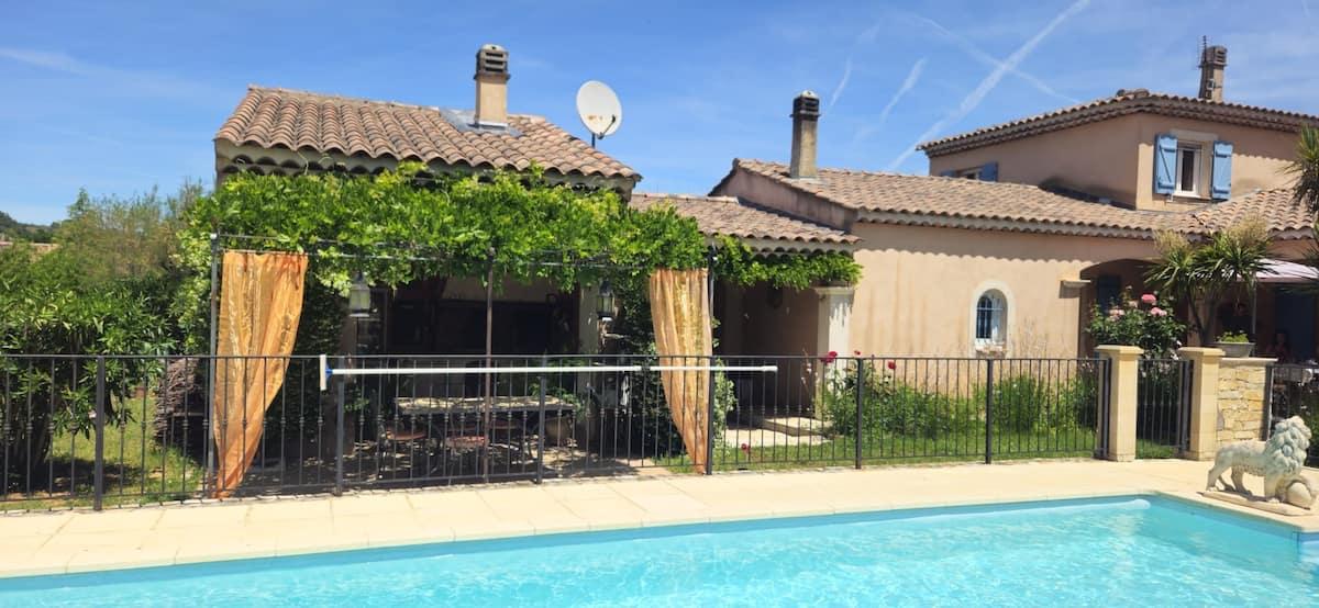 Spacieuse maison indépendante plain-pied de 140 m² entourée d'oliviers, vignes et arbres fruités avec piscine, cuisine d'été, boulodrome, etc. Située dans une vaste propriété de 2500 m², c'est un havre de paix pour un séjour en famille en Provence Verte.