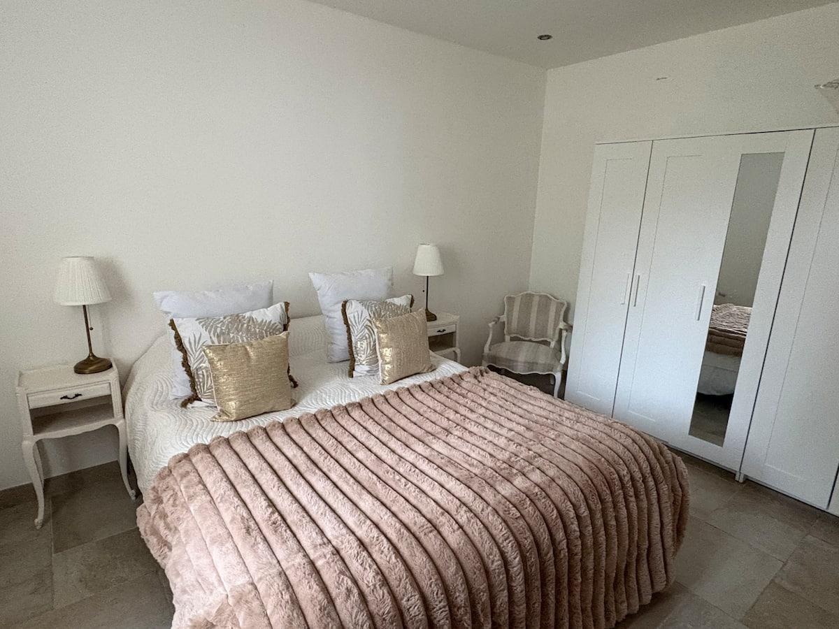 - Chambre de 15m² avec fenêtre et volets, lit king size en 160 (draps fournis) couettes et oreillers, armoire de rangement, deux fauteuils
