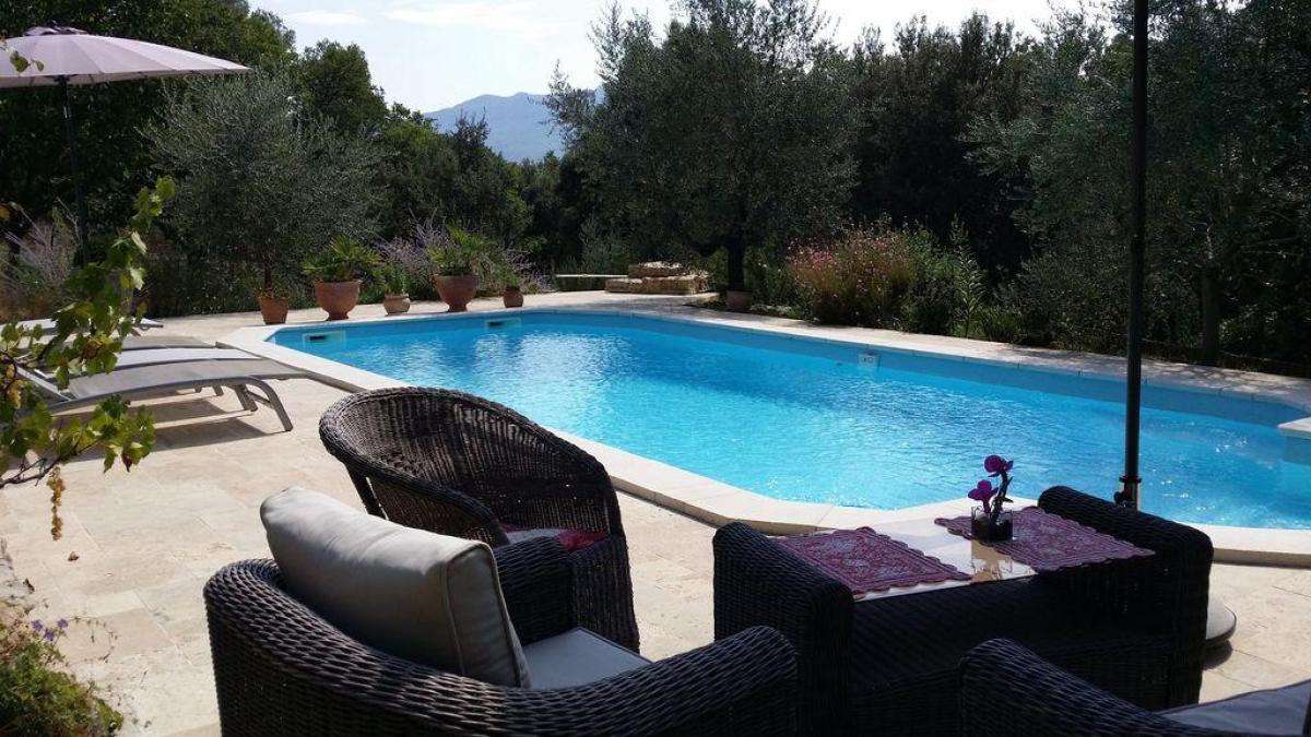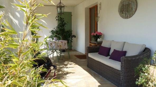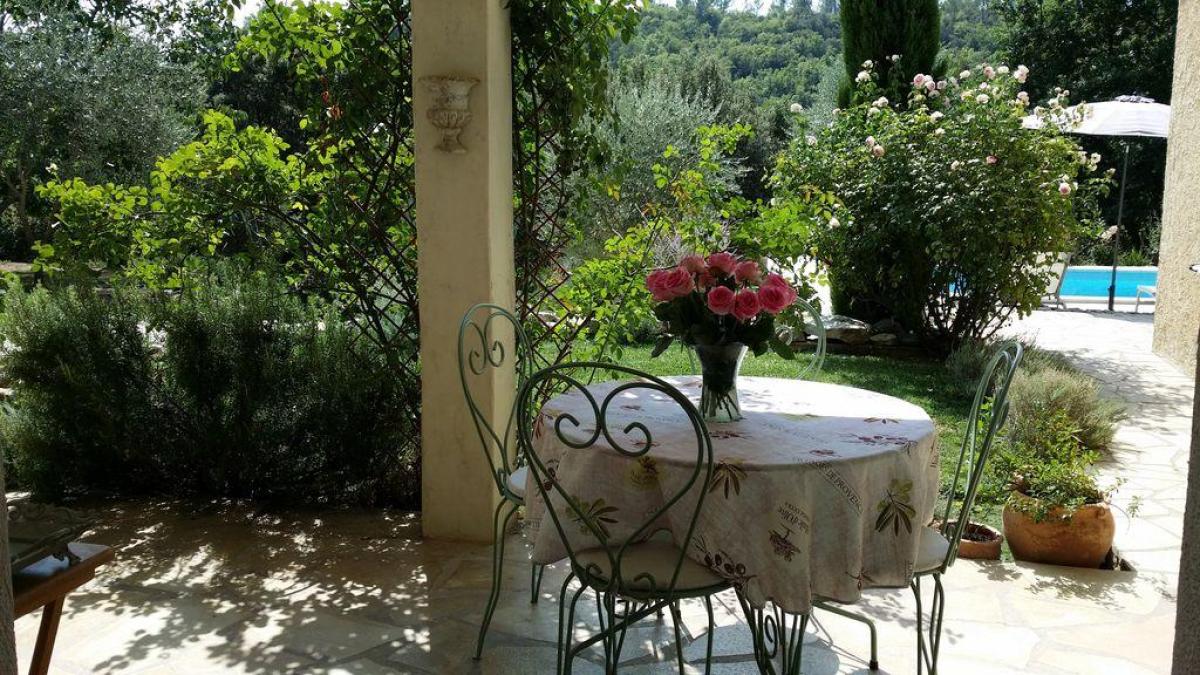 Appartement mitoyen de la maison des propriétaires. Jardin agréable arboré et fleuri et collines environnantes. Calme et repos sont les maîtres mots de ce lieu à partager avec les cigales en été. À environ 5 km des commerces.