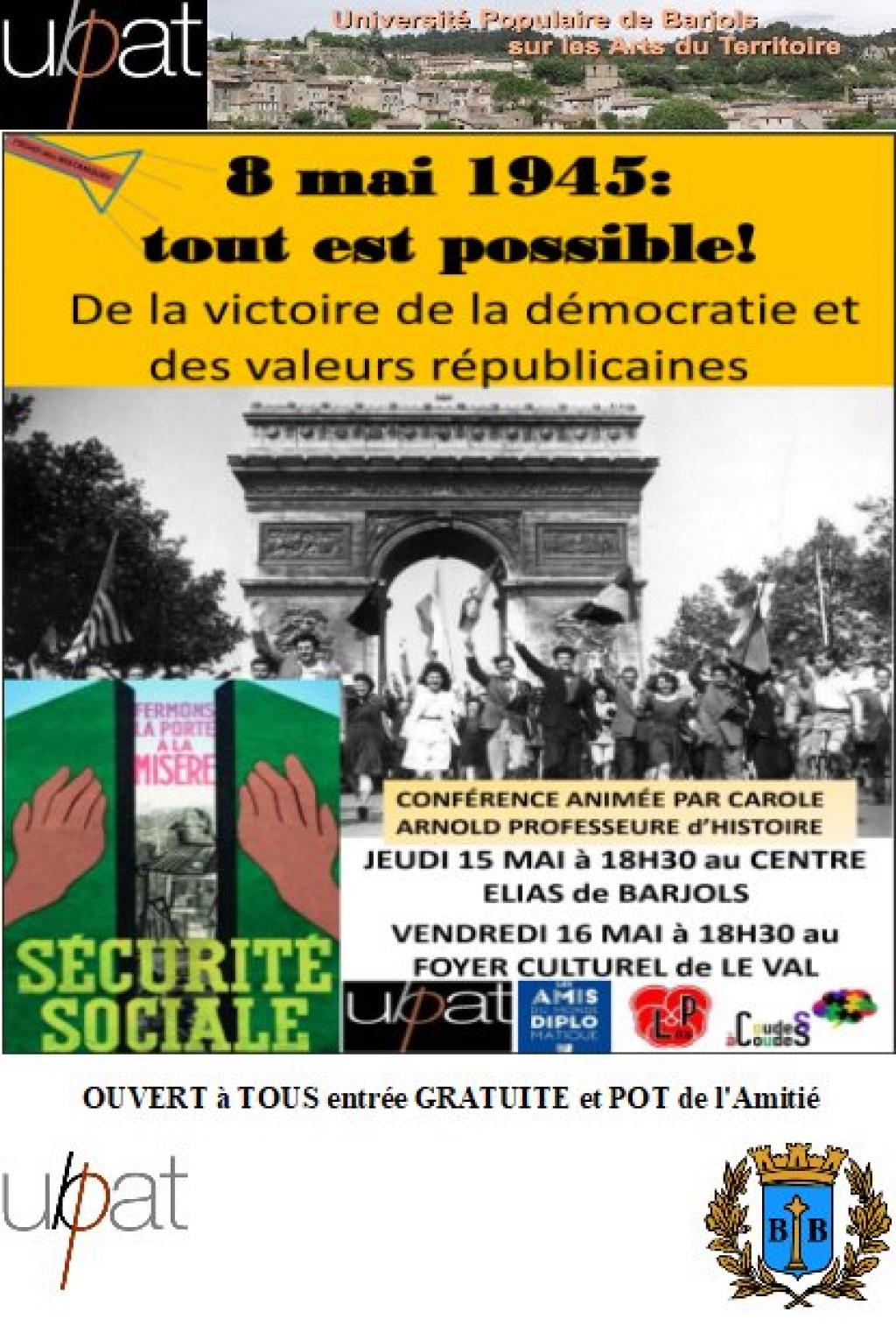 “ De la victoire des démocraties et des valeurs républicaines. Carole Arnold, professeure d'histoire mènera cette conférence. ”