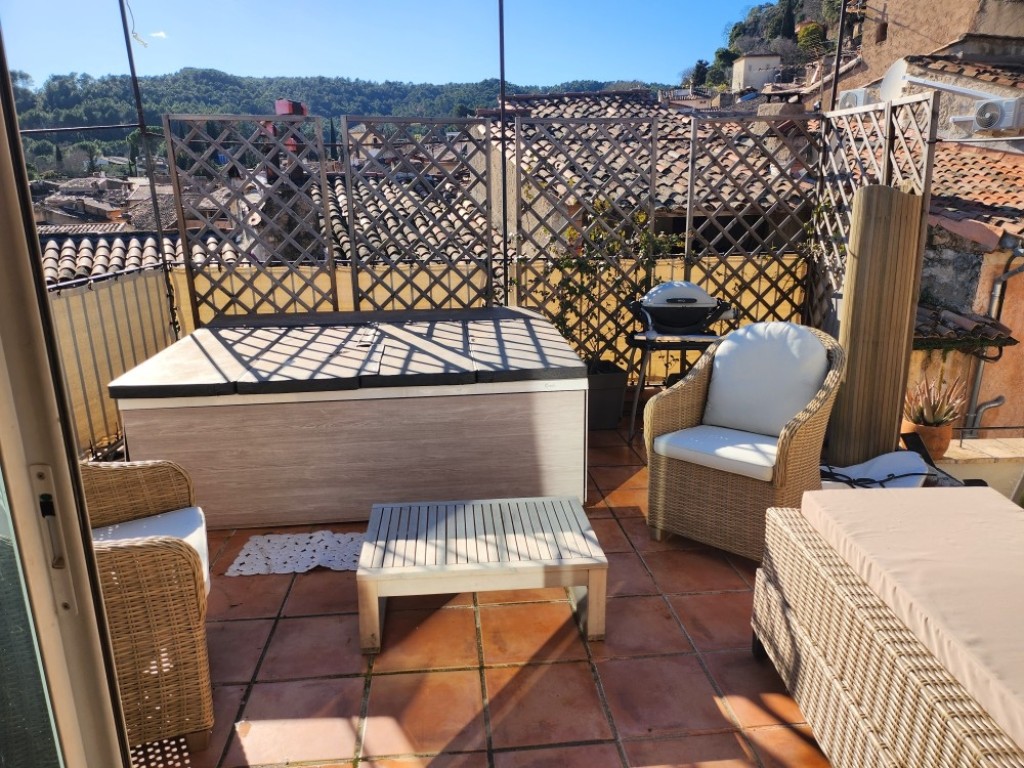 Au coeur de Cotignac, montez à bord du bateau sur les toits. Chambre spacieuse de 23 m² avec mezzanine de 12 m², salle de bain et wc privatifs, bain à remous, sauna, salle de sport, 2 terrasses avec vue sur le Rocher ainsi que le Massif des Maures.