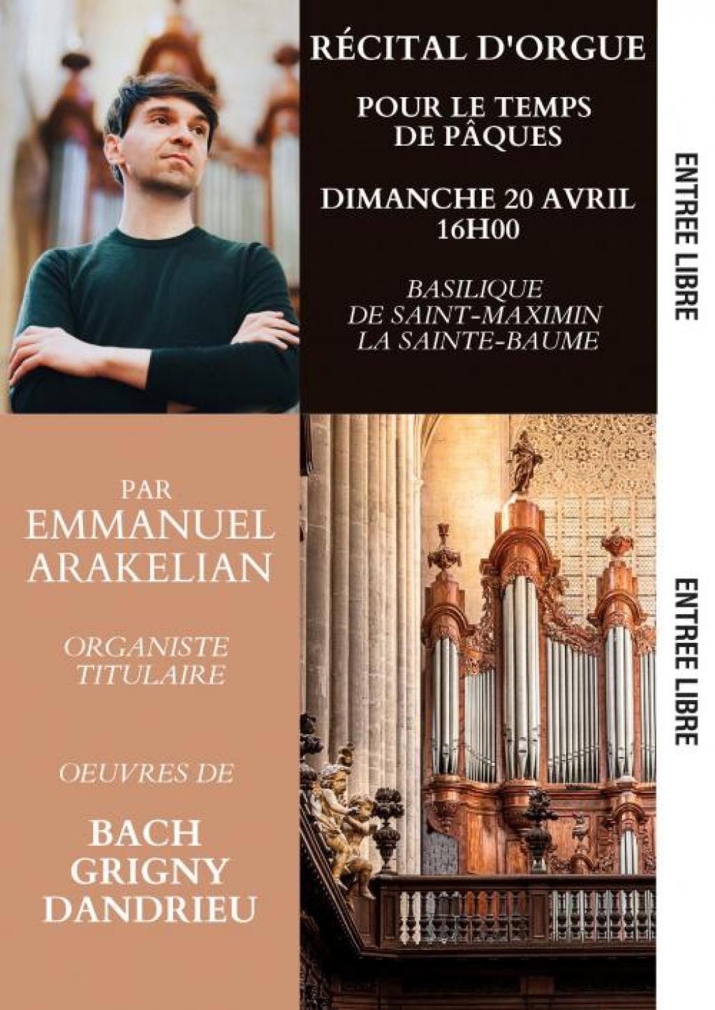 “ Laissez-vous emporter par les sonorités de l'orgue sous les doigts d'Emmanuel Arakelian, organiste titulaire. Il interprétera des œuvres de Jean-Sébastien Bach, Nicolas de Grigny et Jean-François Dandrieu. Un voyage musical pour célébrer Pâques. ”