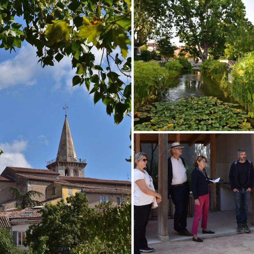 Il commence justement ses explications par le jardin et explique les choix opérés pour sa rénovation ainsi que la volonté d'inclure à Brignoles un véritable poumon vert! Chapeau les artistes c'est bien réussi! Du jardin, notre guide nous montre le dernier point de la visite, l'Eglise et son clocher, bien visibles depuis les bassins. Allez, en route!