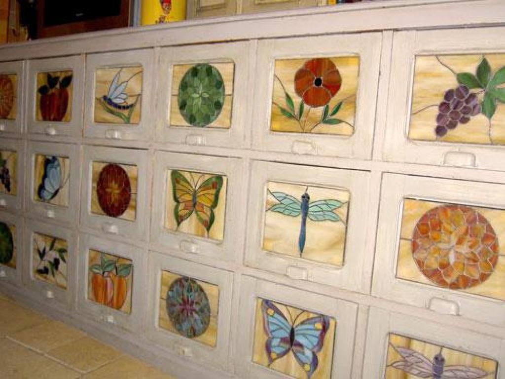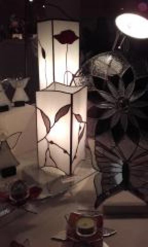 Création et restauration de vitraux au plomb, créations en Tiffany, bijoux originaux. Stages.