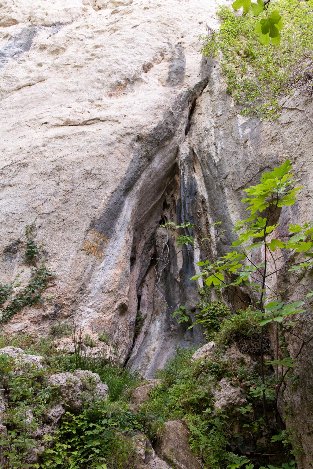 Véritable havre de fraîcheur au fond du vallon des Baumes, le lieu est dominé par une falaise, d'où un filet d'eau s'écoule à travers une faille. L'écoulement est ensuite récolté dans un petit bassin puis amené grâce à un système d'irrigation par gravité permettant d'irriguer les terrasses en culture. Une grotte d'environ 4 mètres s'enfonce sous la source à travers le tuf.