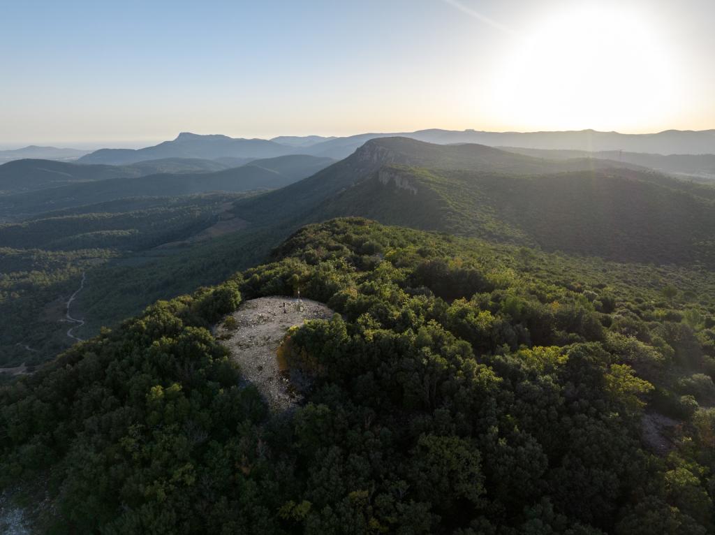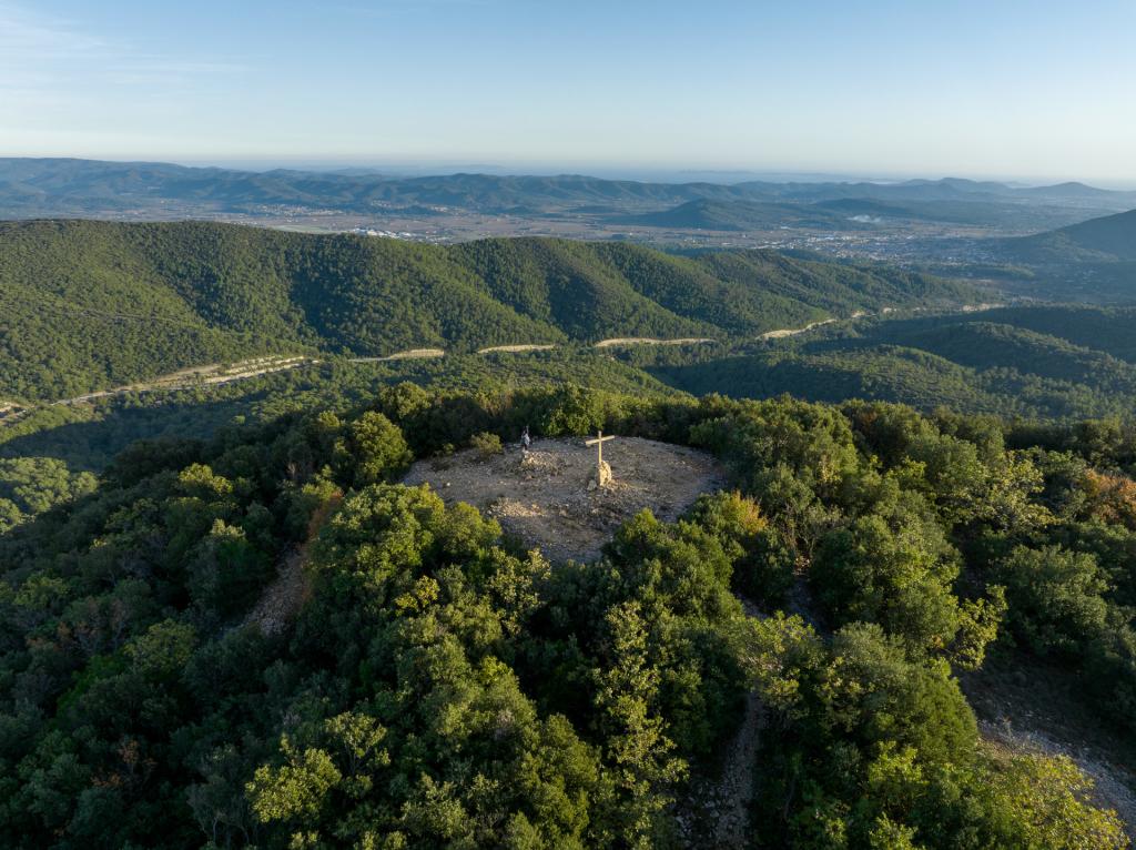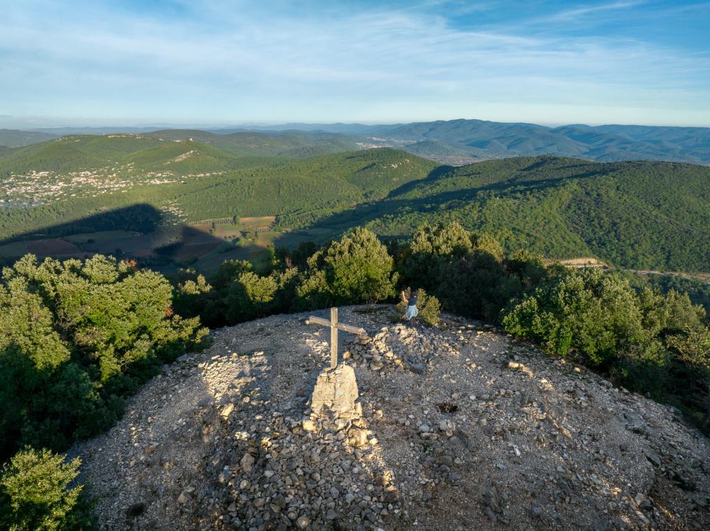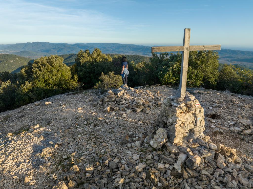 Au sommet, une croix en guise de repère offre un large panorama : la côte varoise où se distinguent les Monts Toulonnais (Caume, Coudon et Faron), la presqu’île de Giens et les îles d’Or (Porquerolles, Port-Cros, Le Levant). A l’automne, vous admirerez les vignes rouges qui tapissent la plaine de Cuers. A l'opposé le château de Forcalqueiret, et en arrière plan les Alpes enneigées.