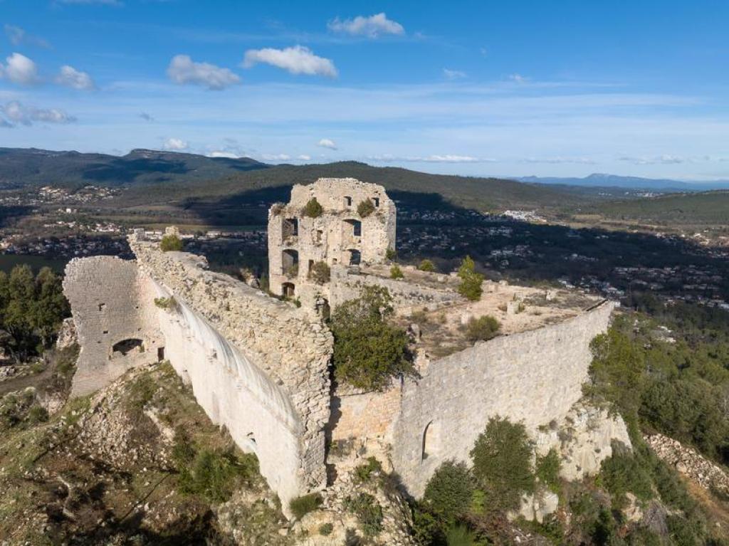 Implanté sur un promontoire, le château fort domine la plaine de 130 mètres environ. C'est l'édifice militaire médiéval le plus important du Var. Visible de l'extérieur et de loin uniquement (risque d'effondrement)