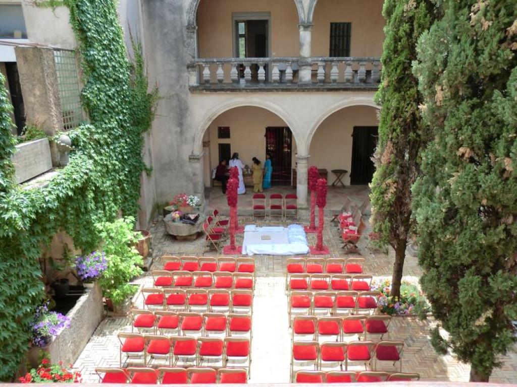 Après avoir franchi un passage à voûte romane, une cour intérieure dévoile une architecture raffinée : galerie à double arcade surmontée d'une double loggia à l'italienne, fontaine à mascaron...Les différentes salles accueillent régulièrement des manifestations culturelles réputées dans la région.