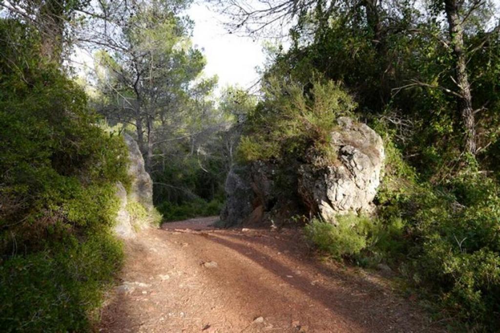 2- 30 m avant la barrière, quitter la piste pour suivre à droite, en épingle entre trois pierres, le large sentier rocailleux en descente (balisage jaune). Couper à gauche par le petit sentier derrière un rocher qui rejoint une piste en descente. Suivre toujours le balisage jaune en délaissant les sentiers annexes.
