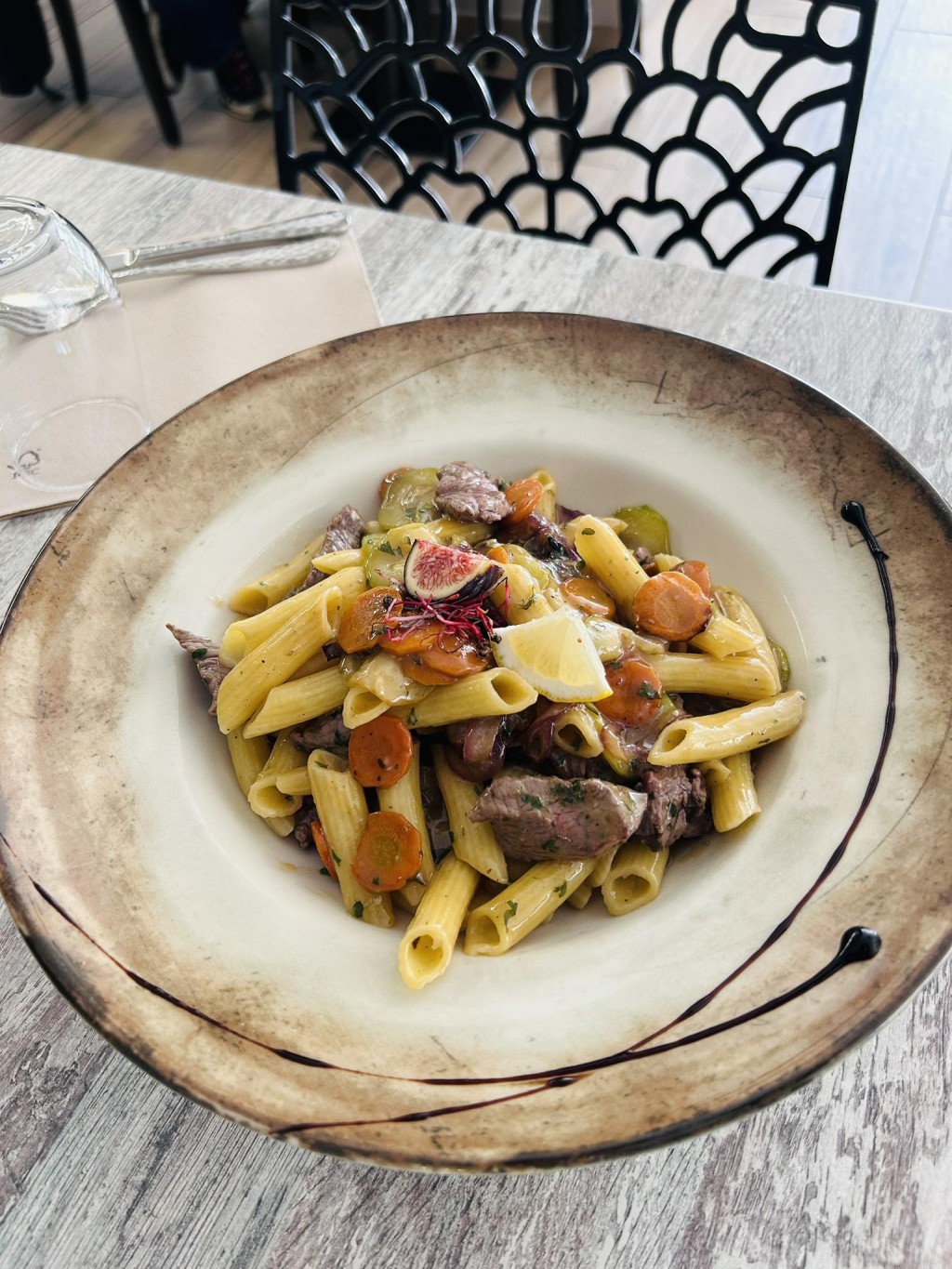 Dégustez des spécialités italiennes dans un restaurant au décor tendance. Vente d'épicerie fine sur place.