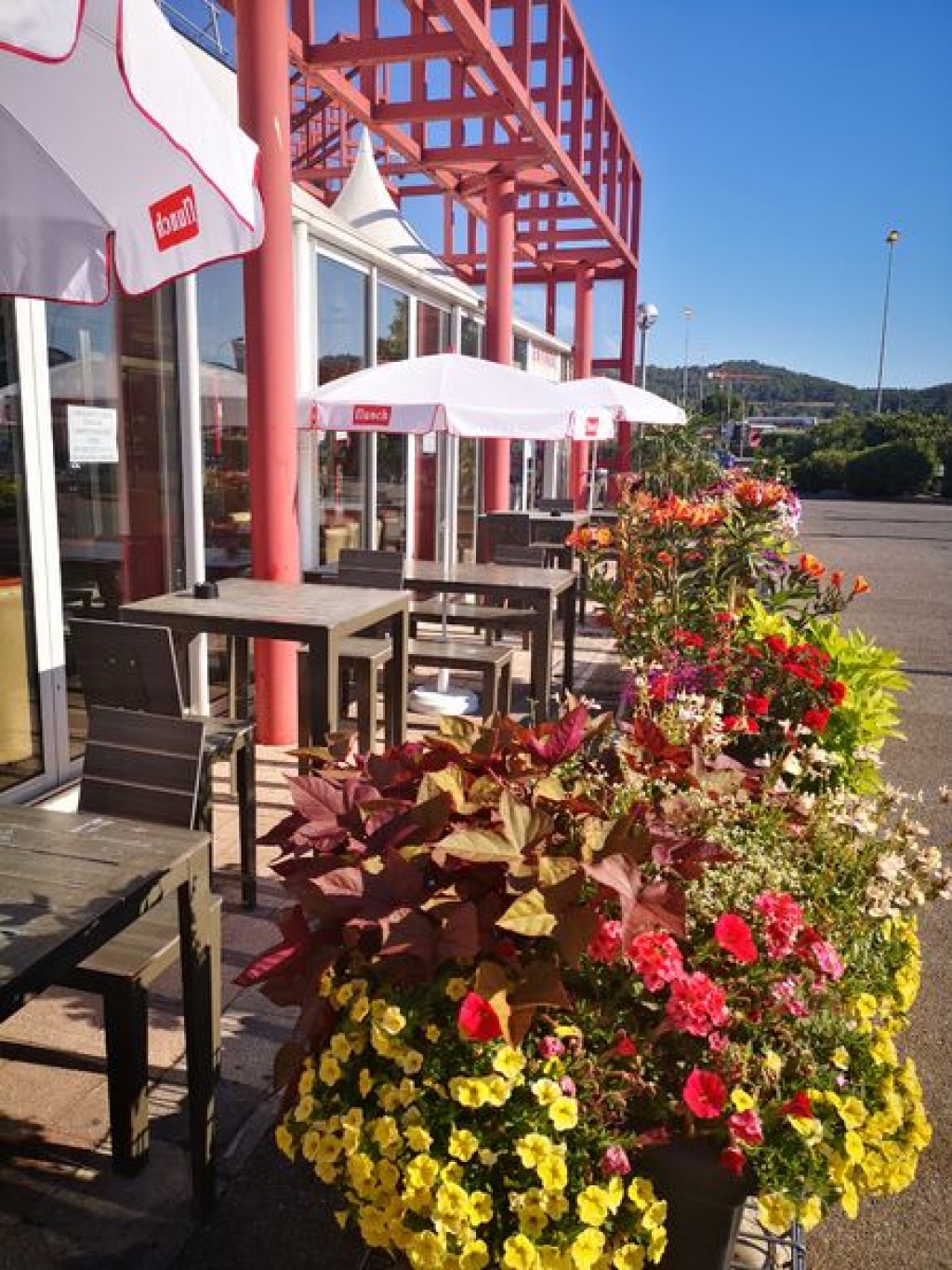 Plats chauds, grillades, pizzas sur place ou à emporter, galettes, bar et cocktails, café, glaces et crêpes. Animaux acceptés en véranda.