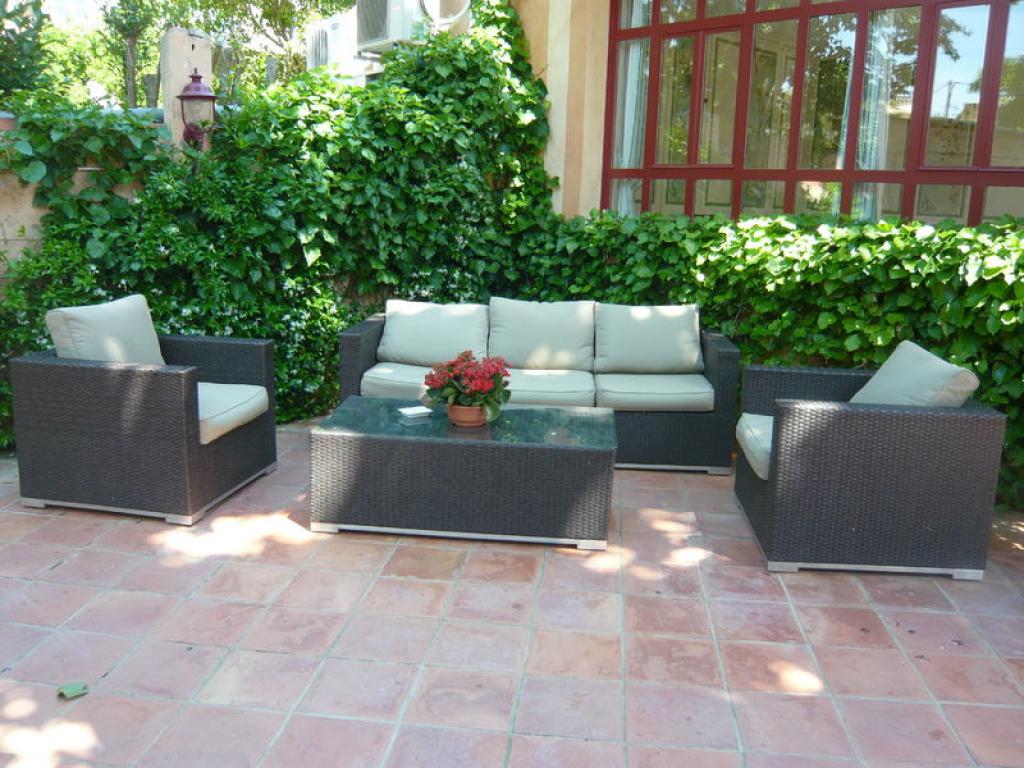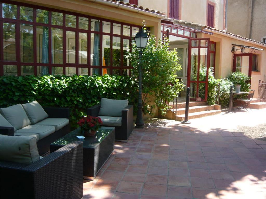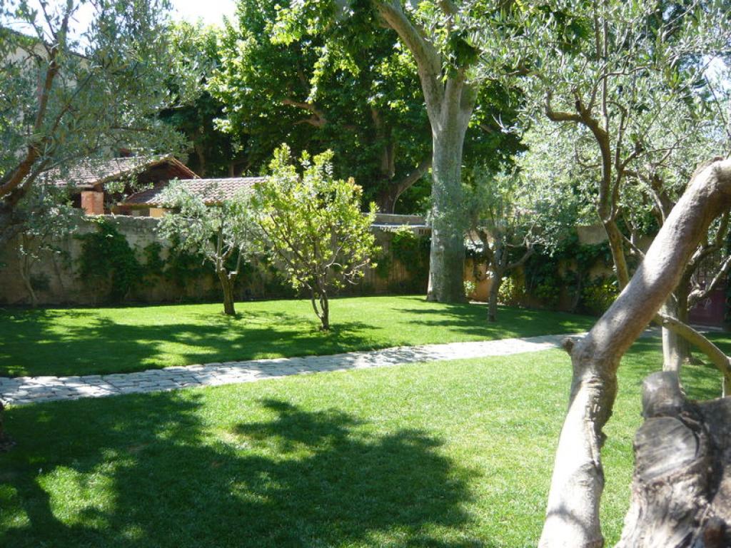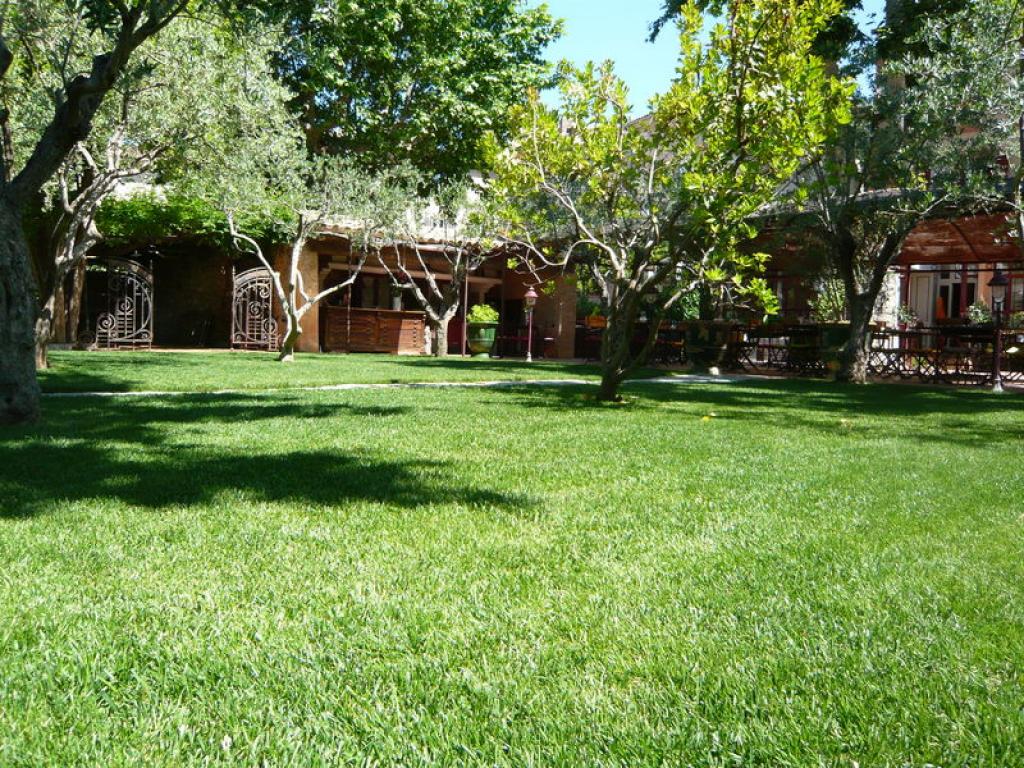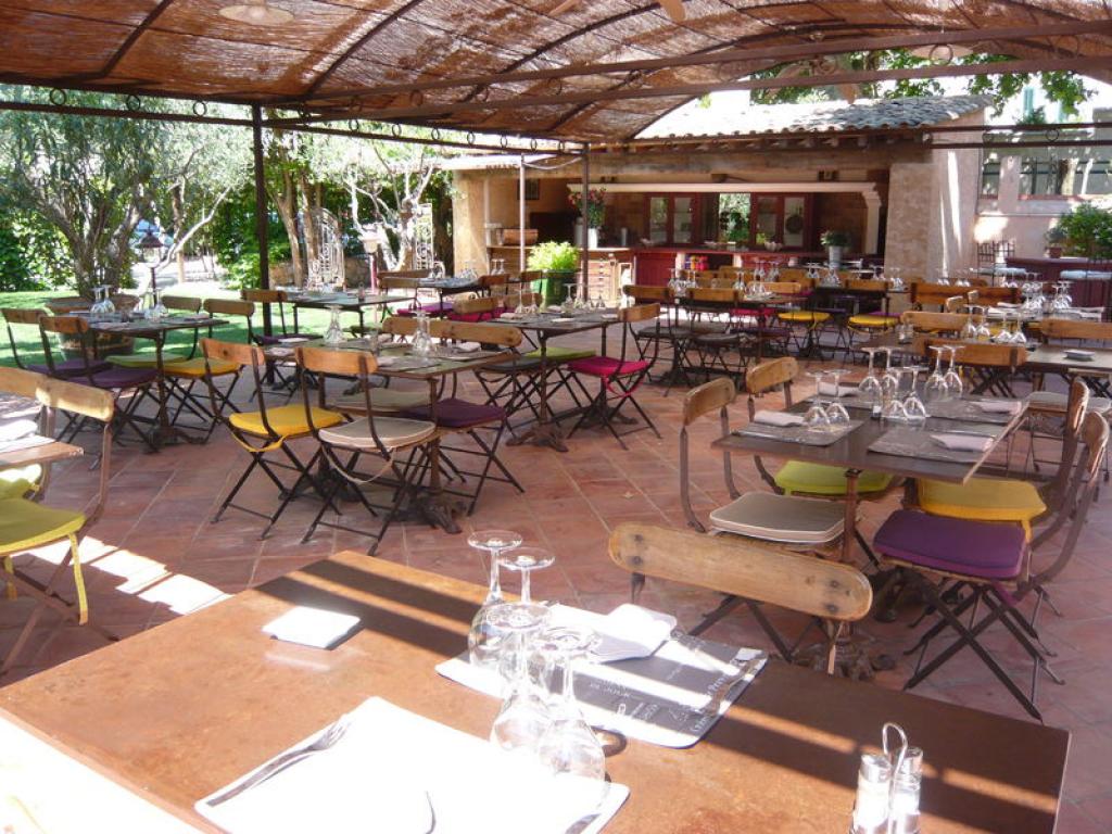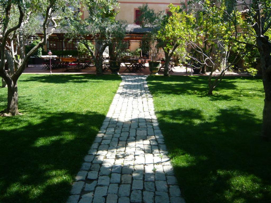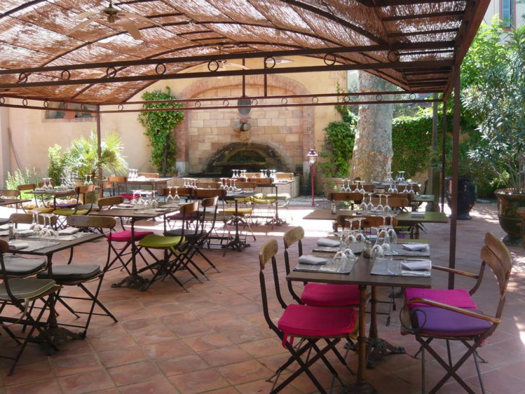Pour les beaux jours, le service se fait dans le jardin à l'ombre des platanes près des oliviers et de la fontaine.