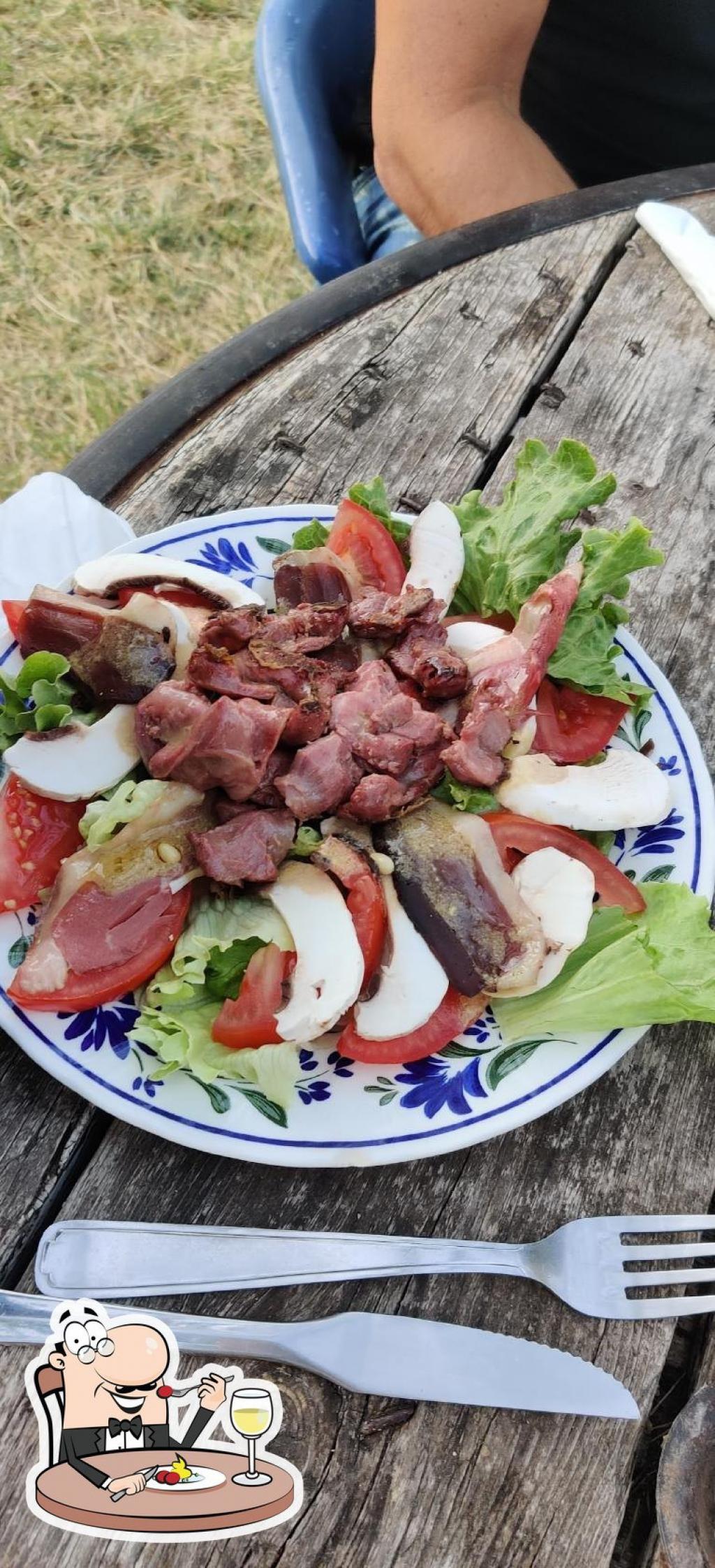 Ambiance conviviale. Restaurant situé en plein champs. Spécialités : salades, magrets entiers ,grillades à la Plancha ainsi que des Burgers.