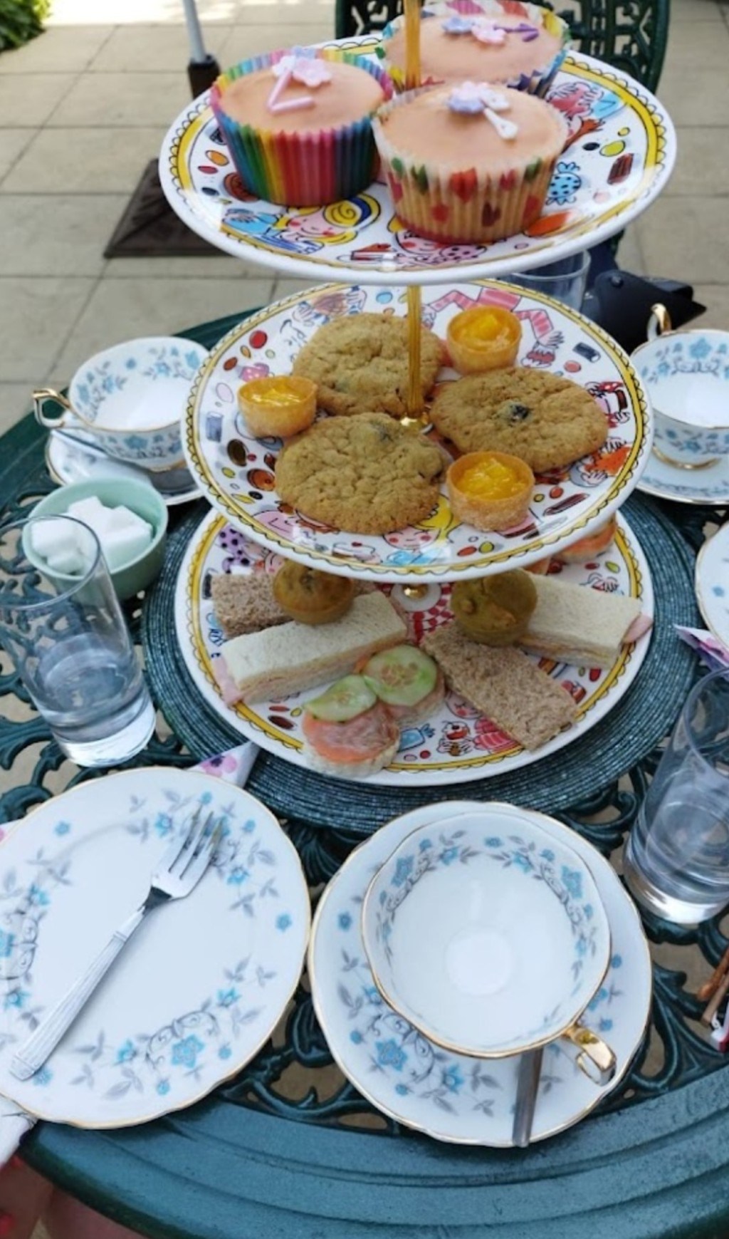 Bienvenue dans notre Salon de thé en extérieur sous la fraîcheur des arbres. Venez savourer nos gourmandises anglaises avec des tasses et des assiettes traditionnelles. Des cupcakes aux sandwiches, vivez une expérience inoubliable.