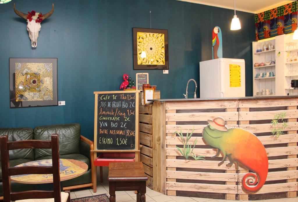 Café associatif, lieu de rencontre et de partage. Livres et jeux de société à disposition. Exposition d'artistes et d'artisans locaux. Vente de produits locaux. Concerts, théâtre et ateliers.