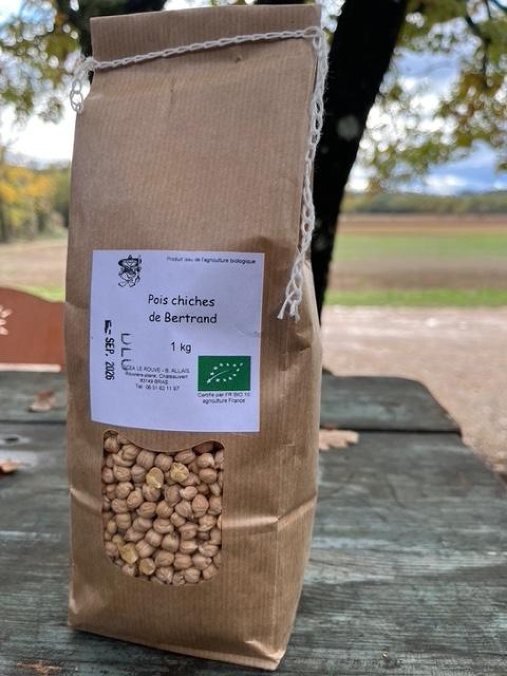Agriculture de céréales anciennes et légumineuses en agriculture biologique. Transformation en farine à la meule de pierre. Boulangerie et magasin de vente. Production de pois chiche et lentilles.