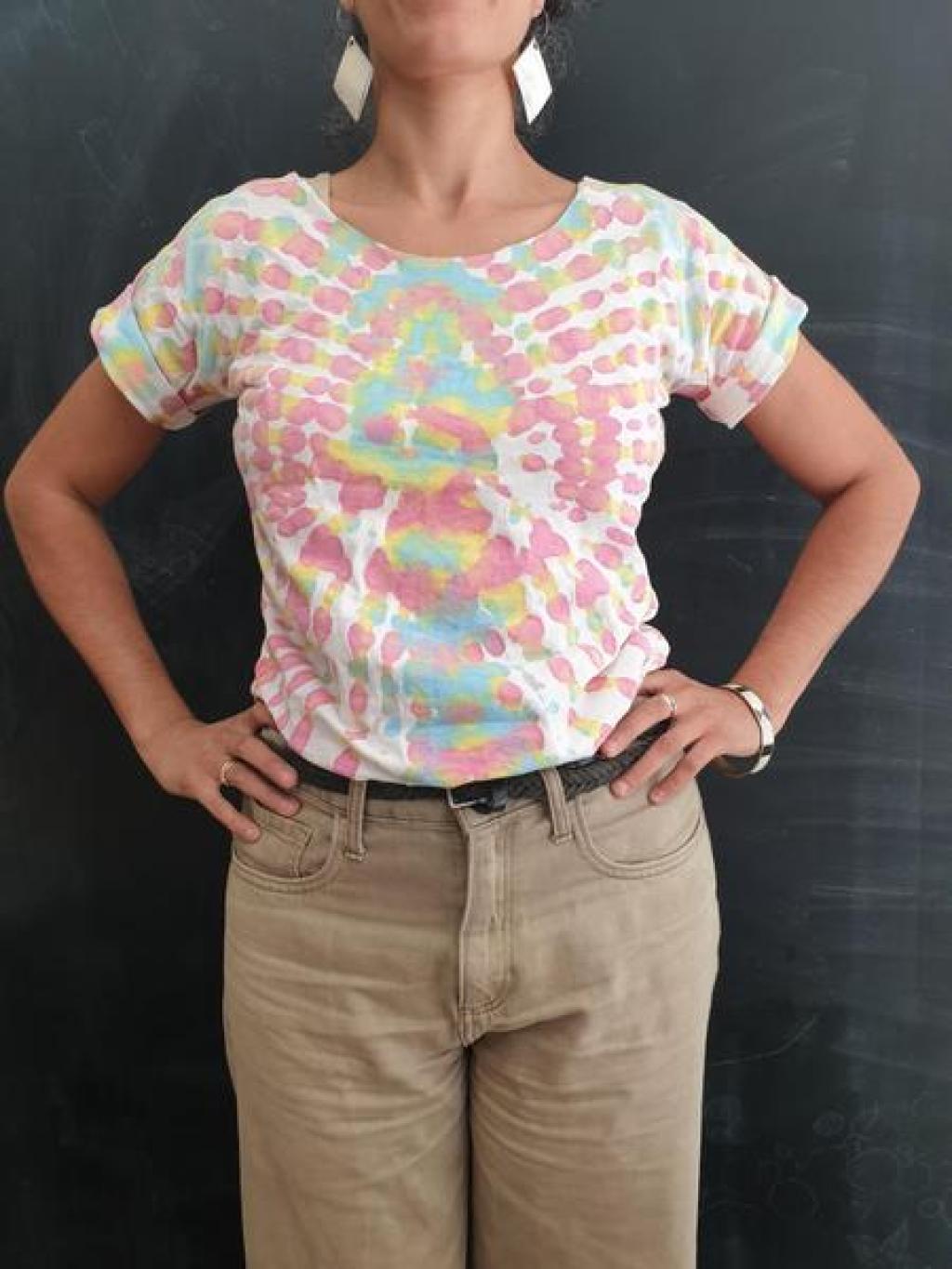 “ Viens découvrir l'exposition de Katia Kaméli et ses œuvres aériennes en soie peinte. Puis deviens artiste textile, et, suivant la technique japonaise du shibori, crée un t-shirt aux motifs multicolores. ”